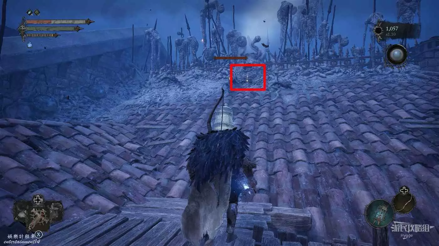 在屋頂上消滅三隻蝙蝠猴後可以拿到一些遺骸之蛾。