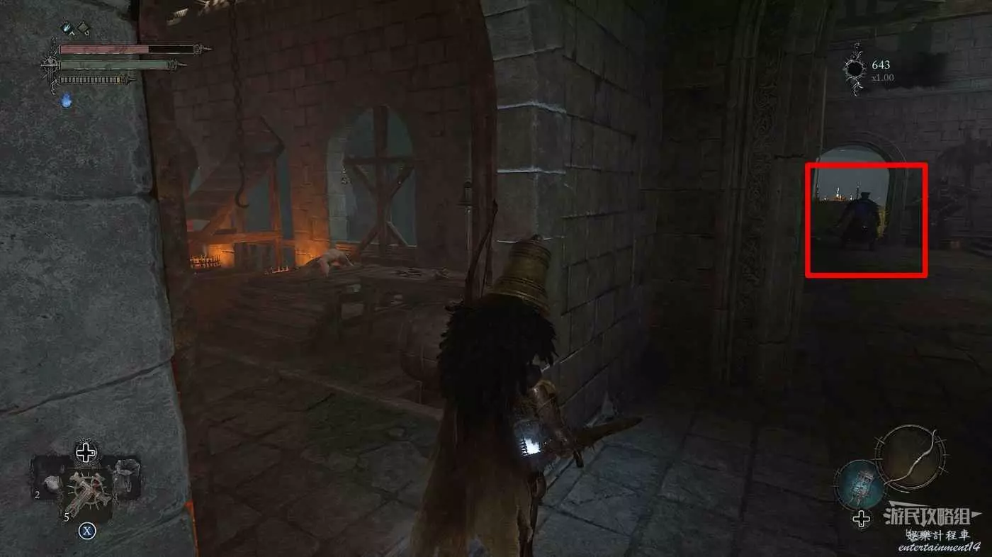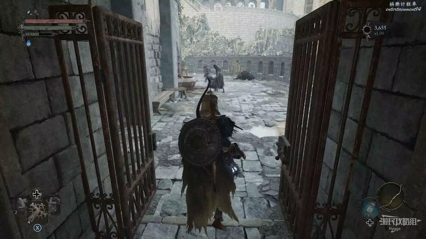 擊殺一名士兵和兩隻獵犬後可以打開通往庭院的單向門。