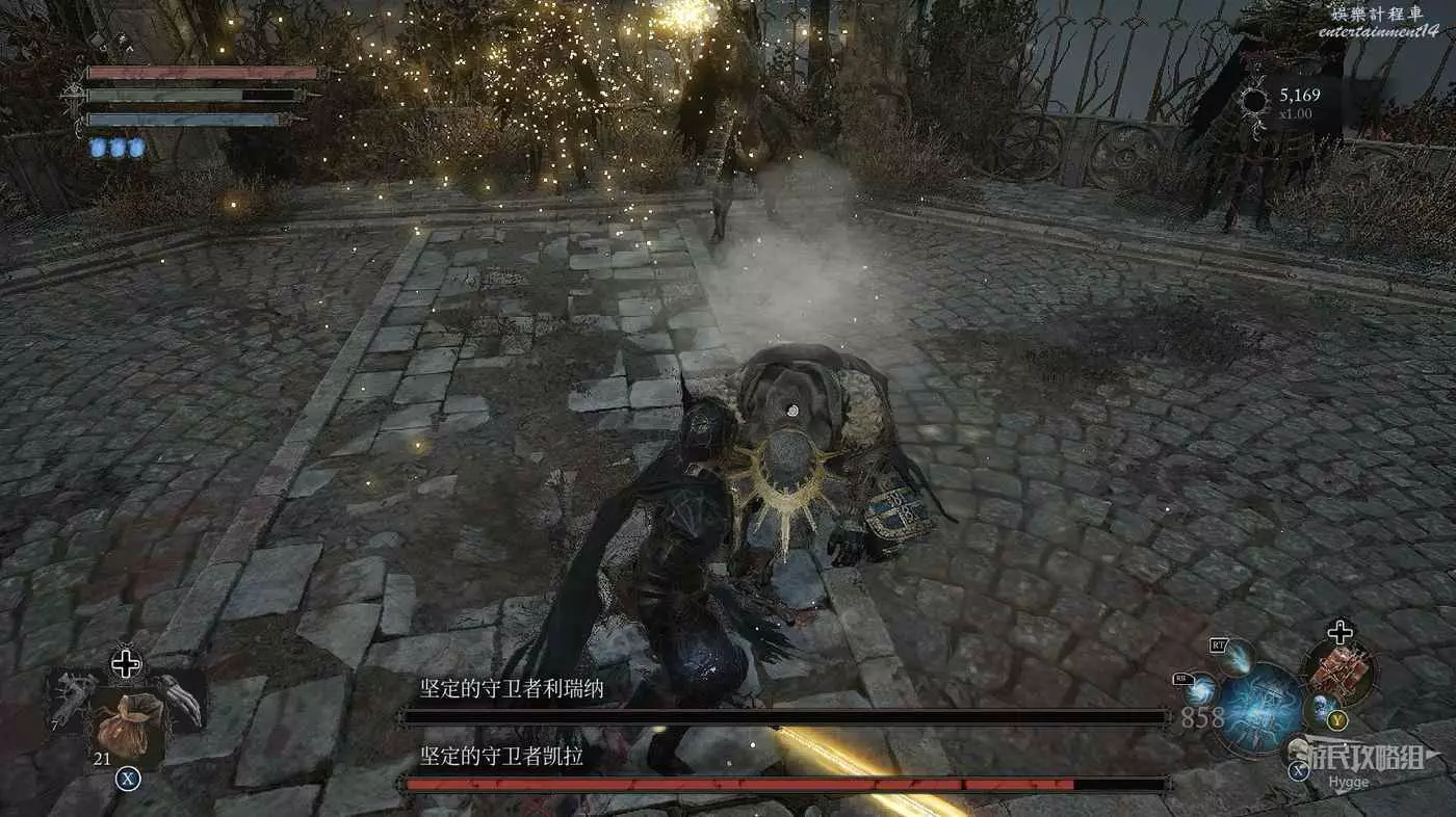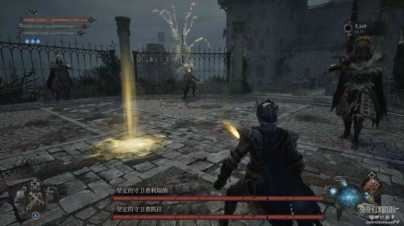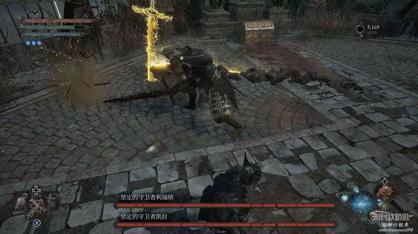 擊殺兩名BOSS後可以獲得武器【發光的堅定的守衛者之劍】、裝備【堅定的守衛者護手】和法術【神聖武器】。