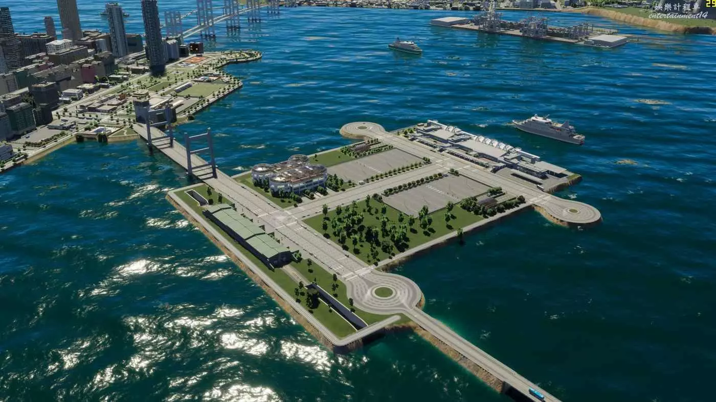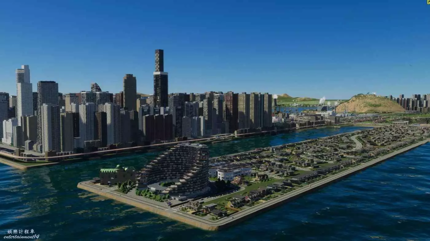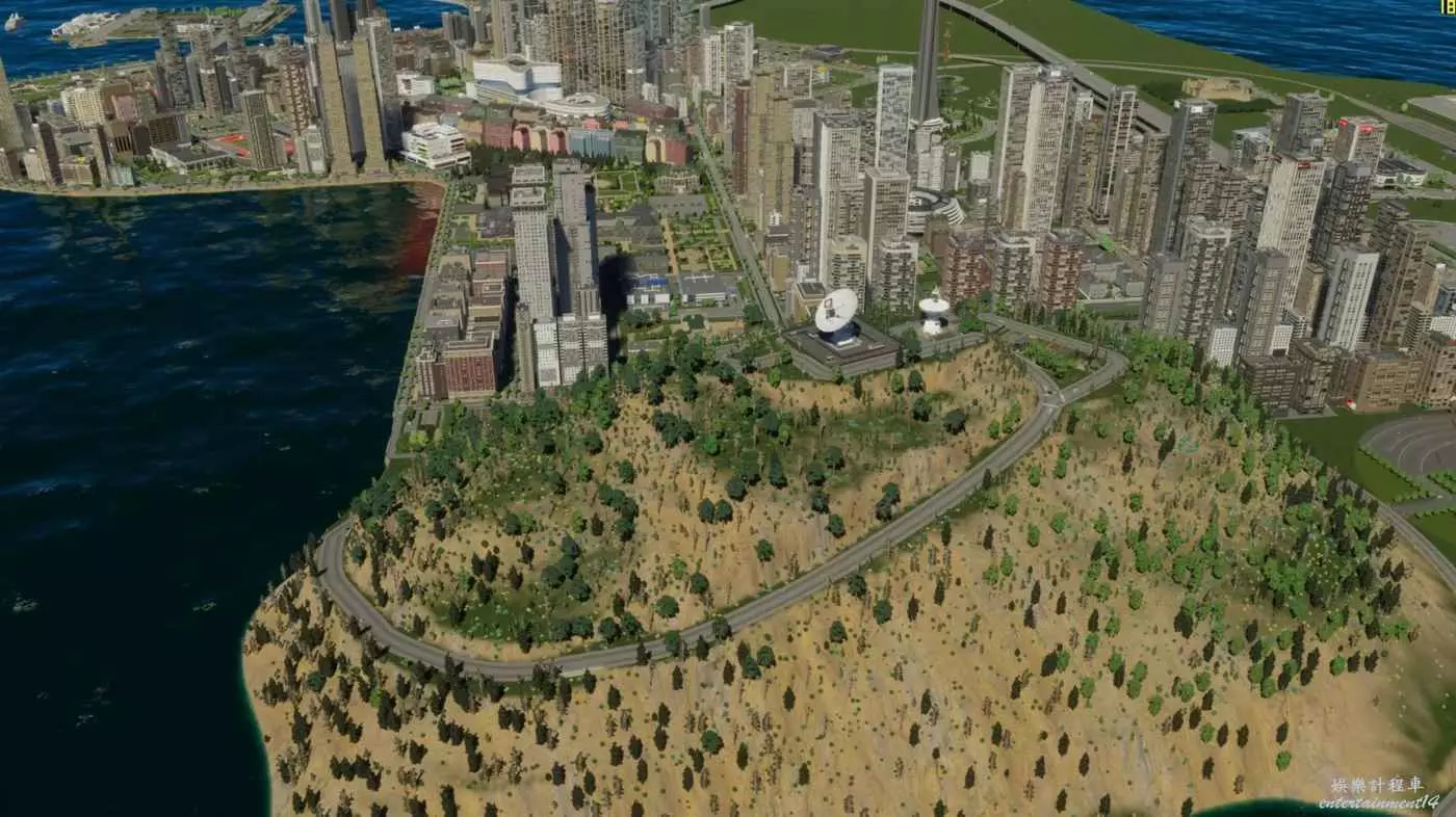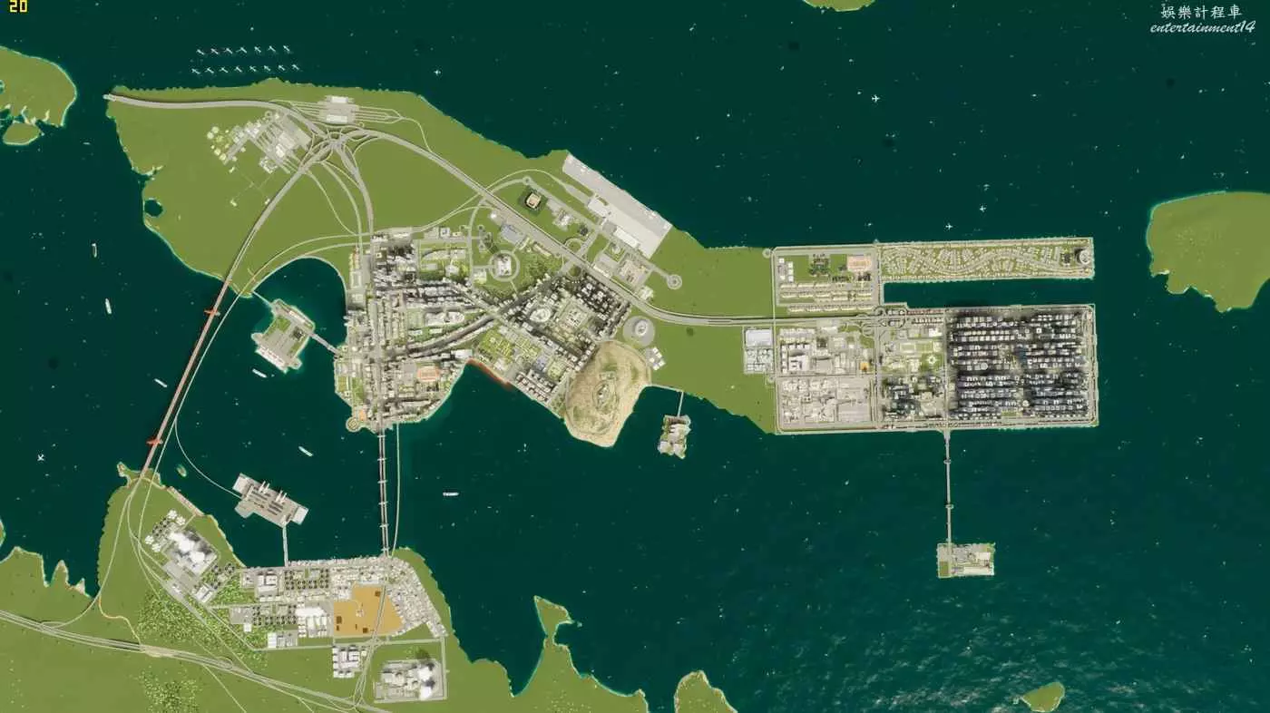 先發一下整體俯瞰圖,原本是規劃左中右三個城區,奈何人口增長太慢了後期,索性封檔後開開發者模式和解鎖全部建築造景玩了。