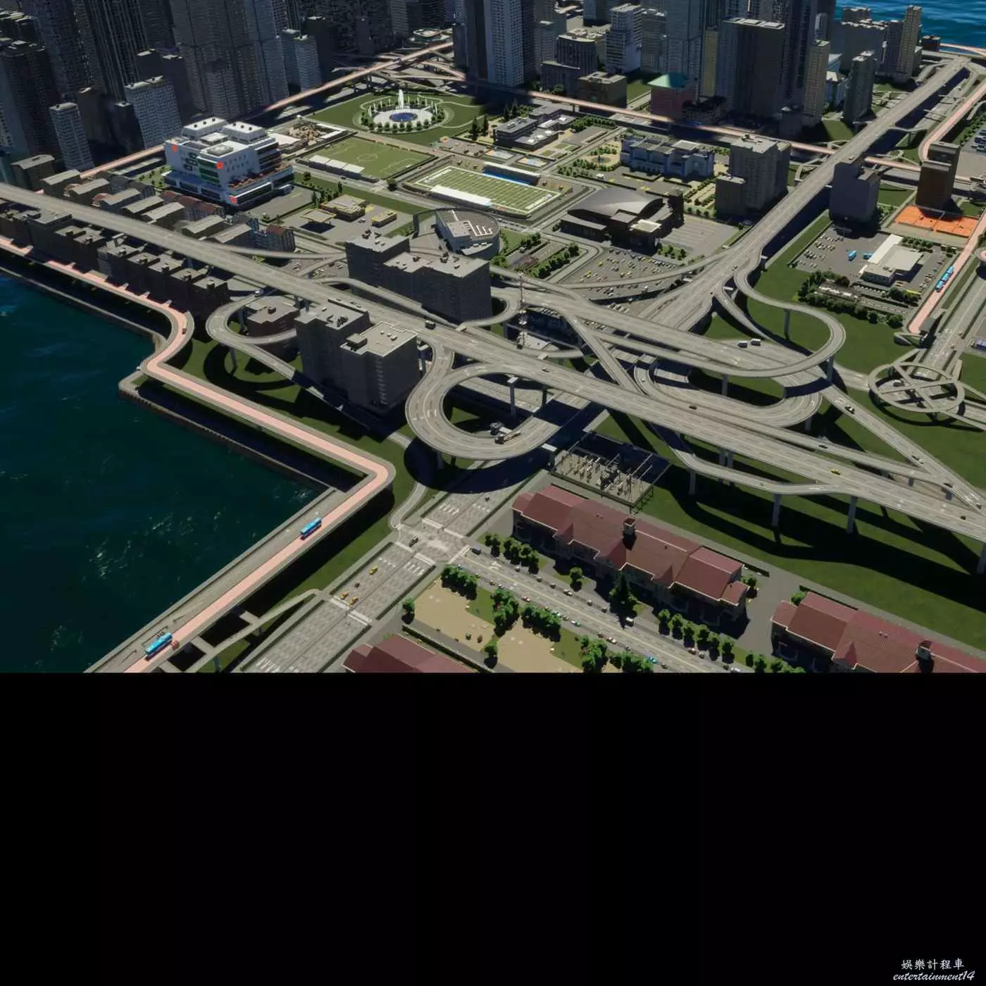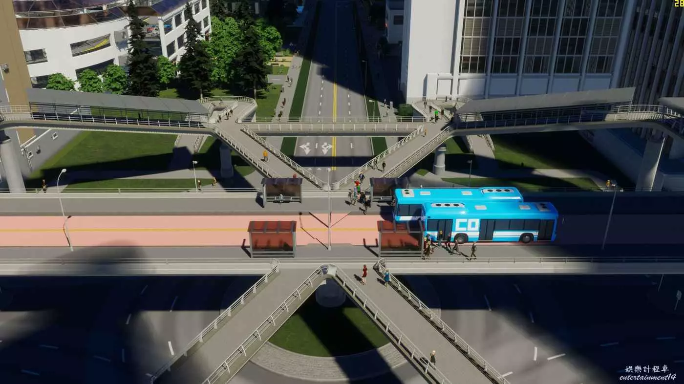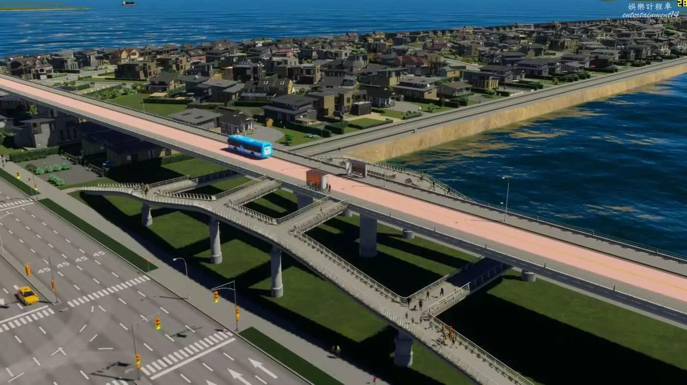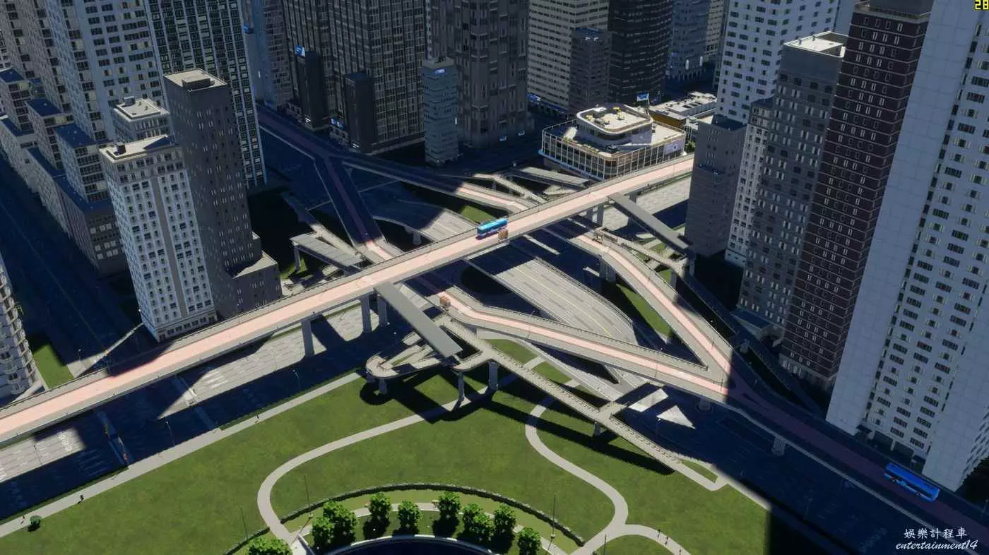 整個新城區我嘗試做了一下高架BRT和高架外環線,主要是嘗試無MOD情況下的原本工具能不能做出比較複雜的高架和BRT,高架上下橋立交橋沒有問題,但是BRT的人行天橋如果不開無碰撞還是很難完成的,各種說重疊和無效形狀,最後還是開了開發者模式才完成的,並且看起來也不違和。