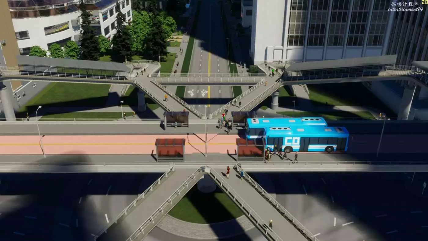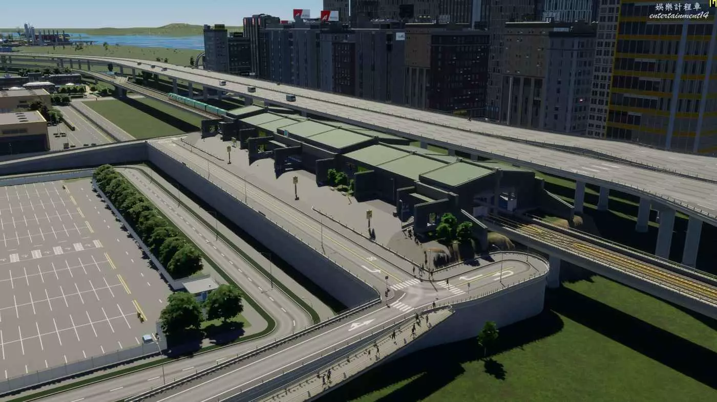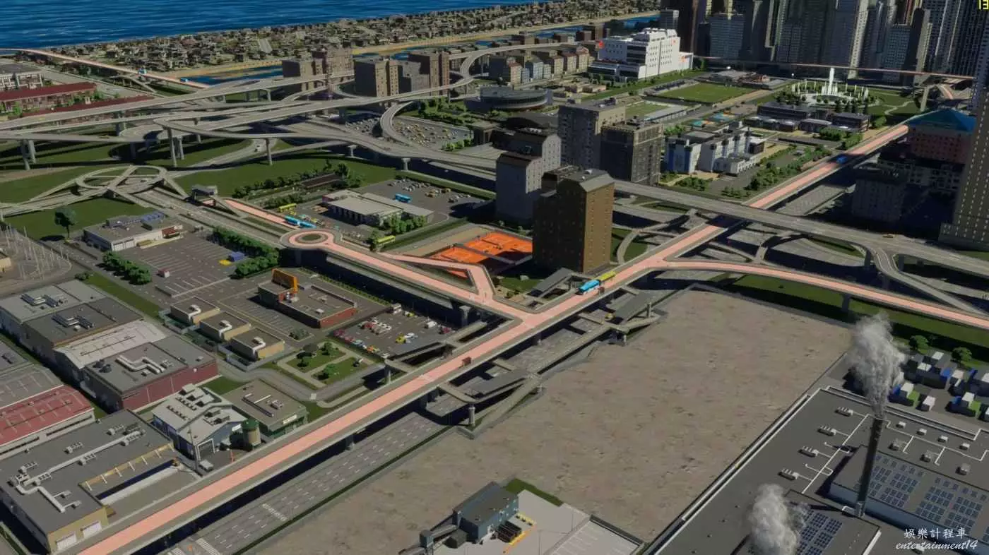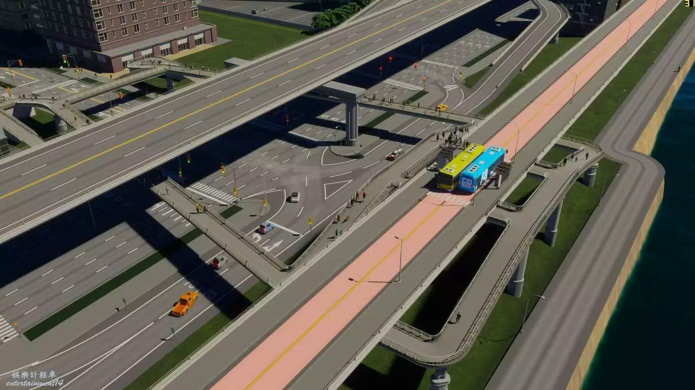 整個新城區我嘗試做了一下高架BRT和高架外環線,主要是嘗試無MOD情況下的原本工具能不能做出比較複雜的高架和BRT,高架上下橋立交橋沒有問題,但是BRT的人行天橋如果不開無碰撞還是很難完成的,各種說重疊和無效形狀,最後還是開了開發者模式才完成的,並且看起來也不違和。