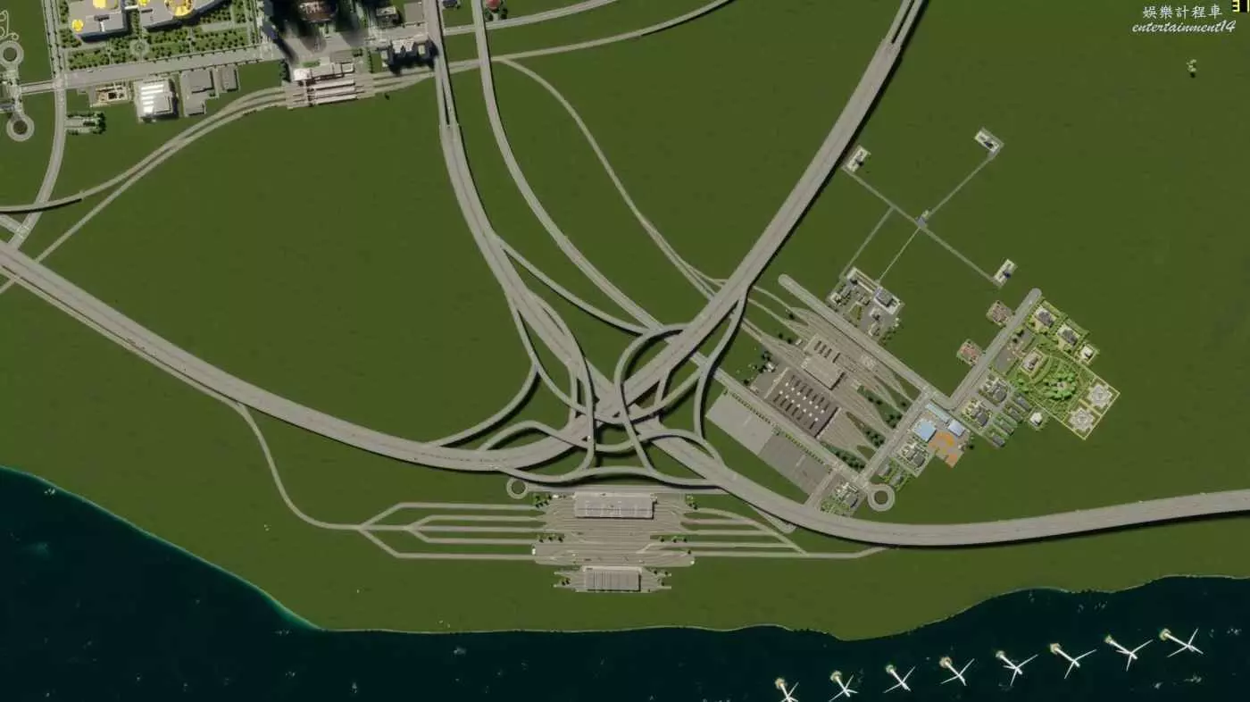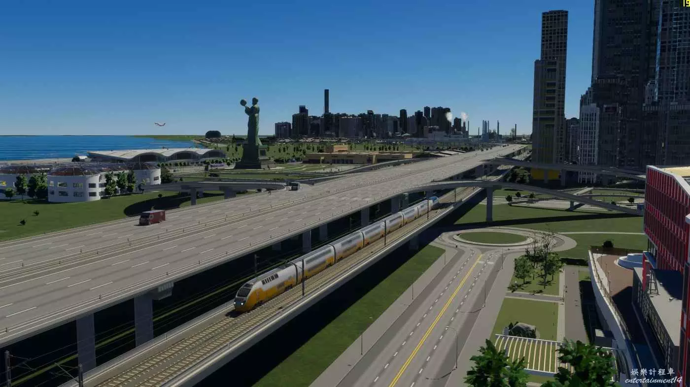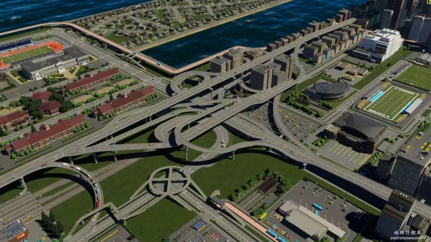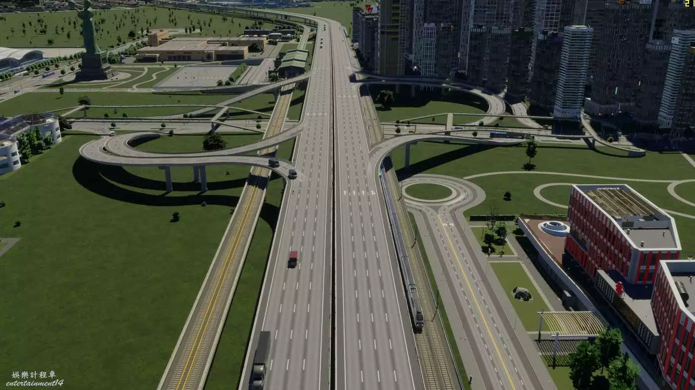 整個新城區我嘗試做了一下高架BRT和高架外環線,主要是嘗試無MOD情況下的原本工具能不能做出比較複雜的高架和BRT,高架上下橋立交橋沒有問題,但是BRT的人行天橋如果不開無碰撞還是很難完成的,各種說重疊和無效形狀,最後還是開了開發者模式才完成的,並且看起來也不違和。