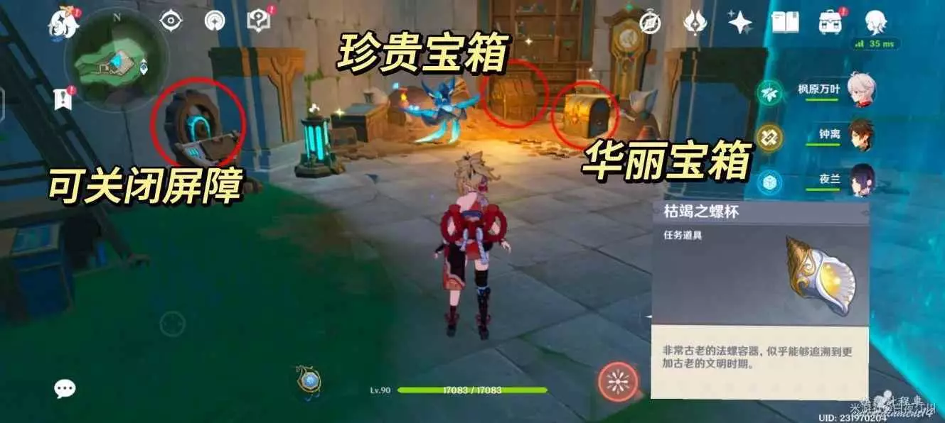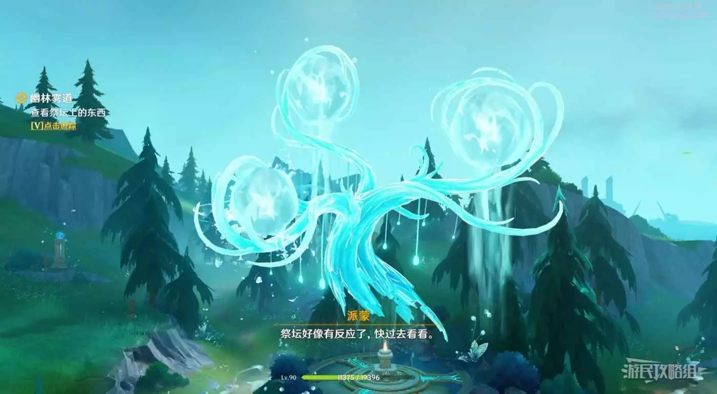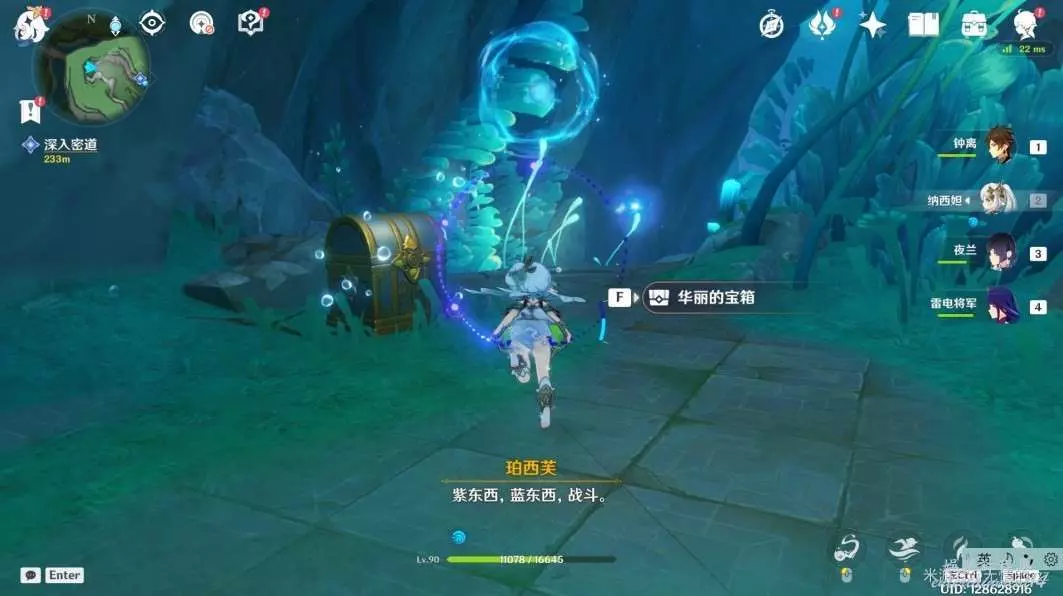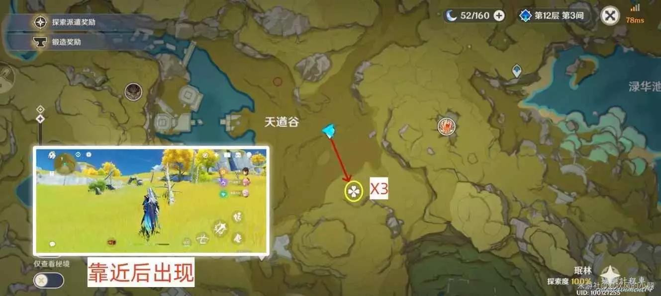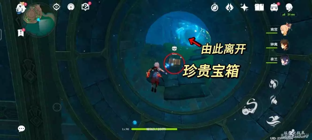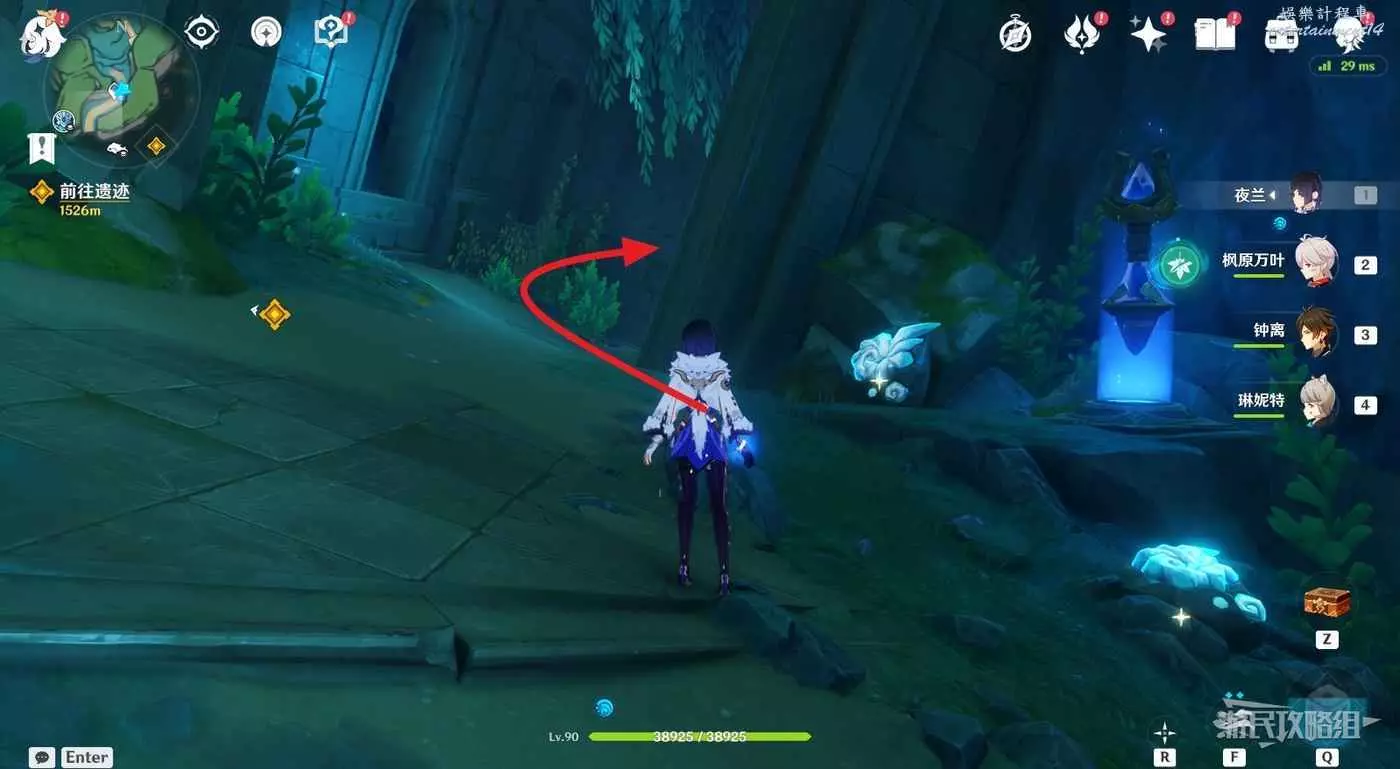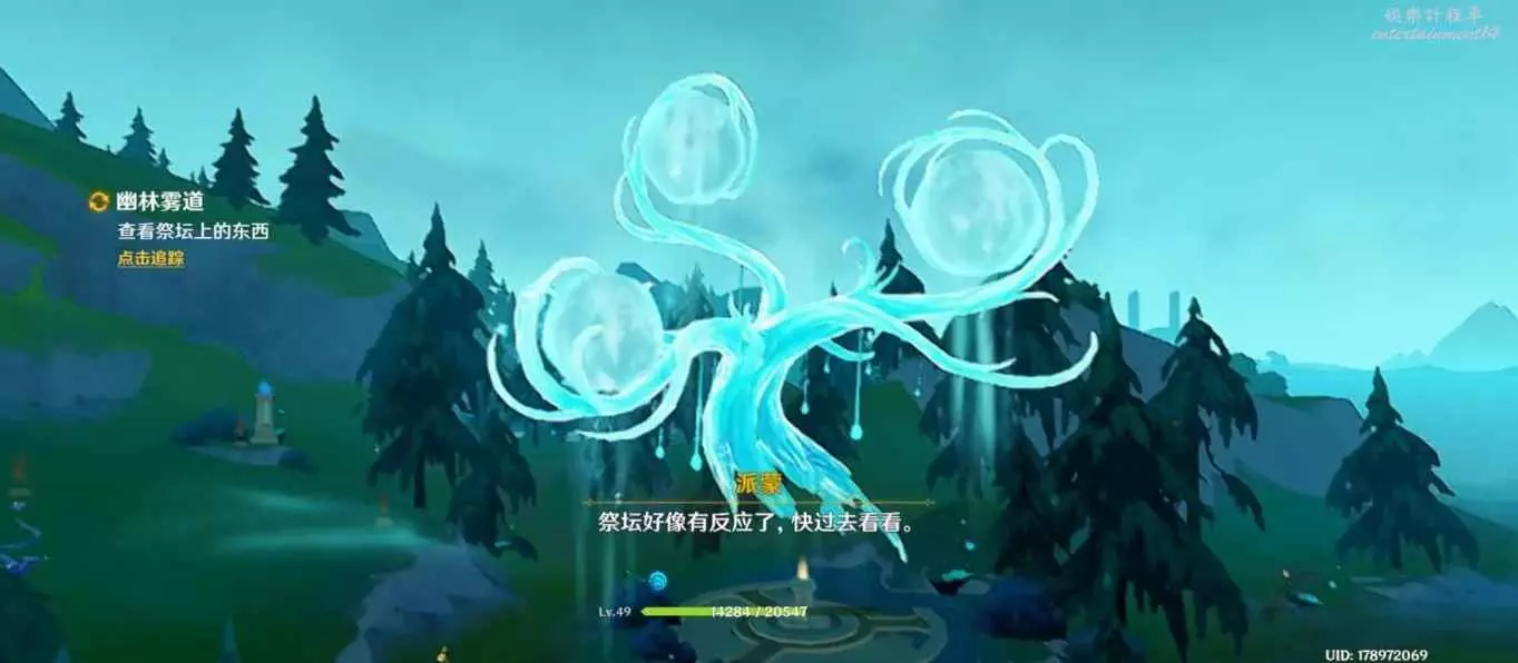 靠近目的地區域自動觸發對話。對話完畢後進入秘境。秘境中有寶箱注意拾取。