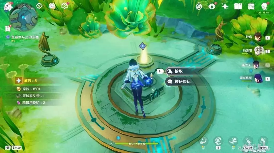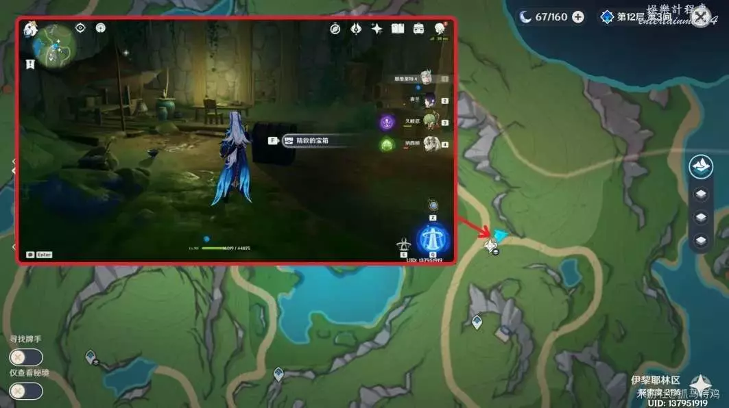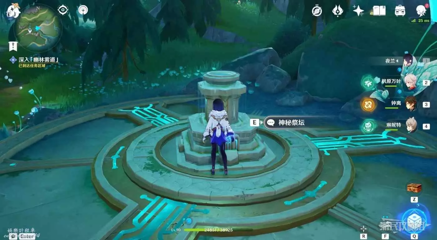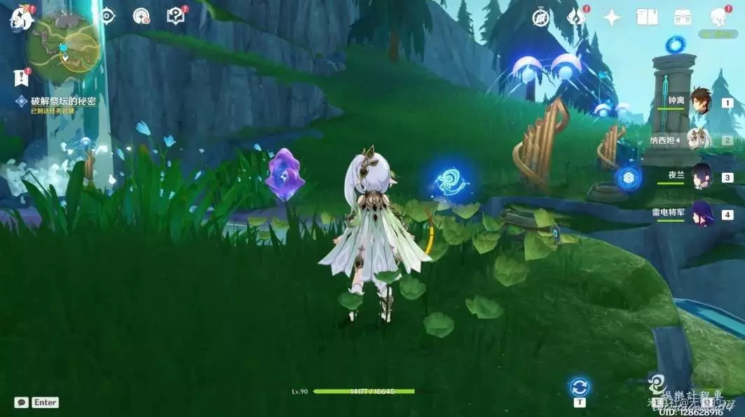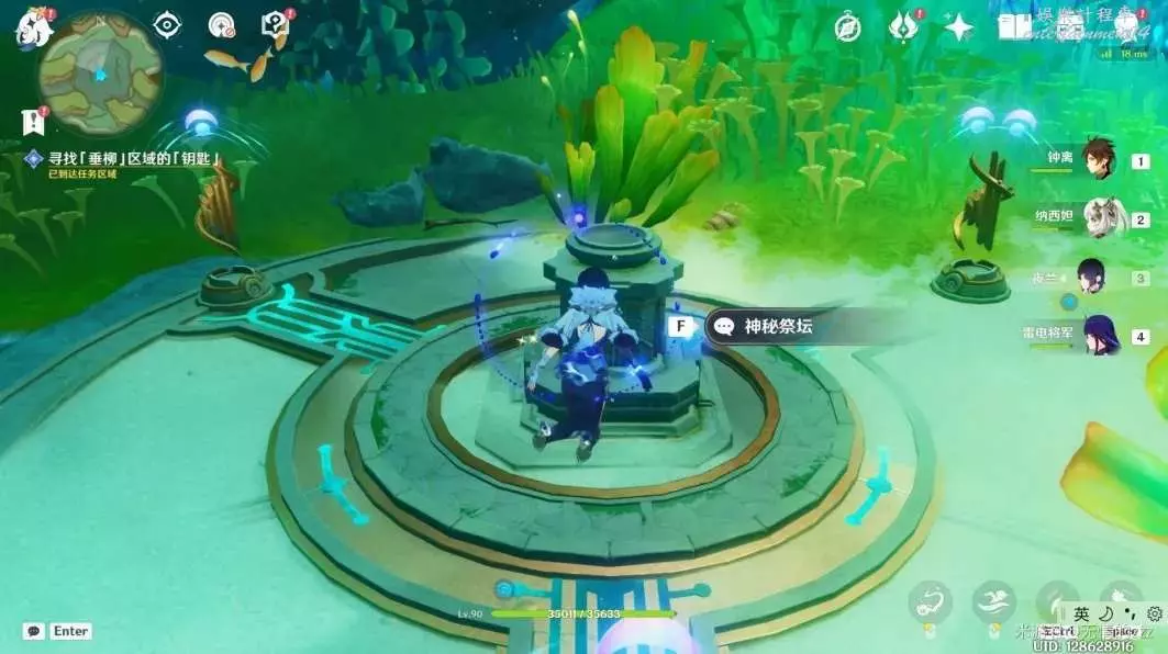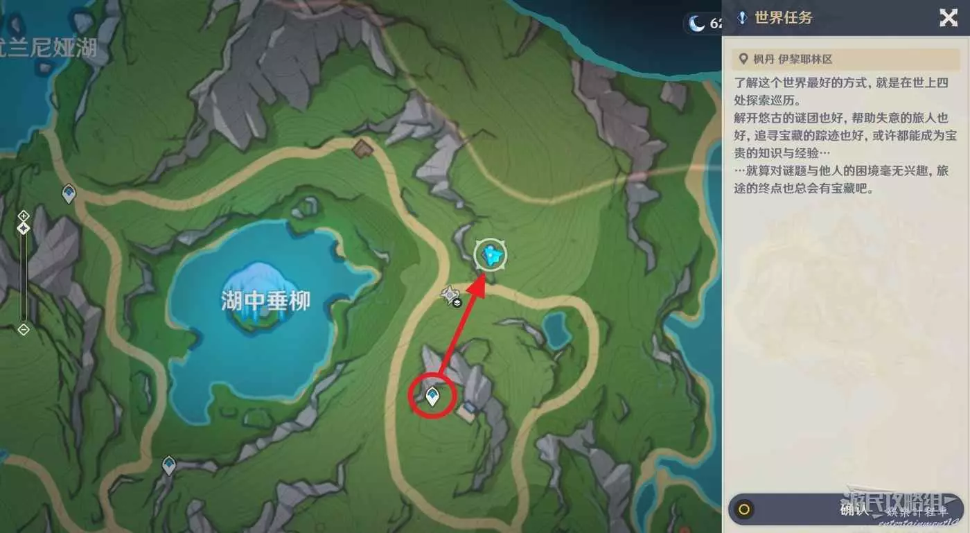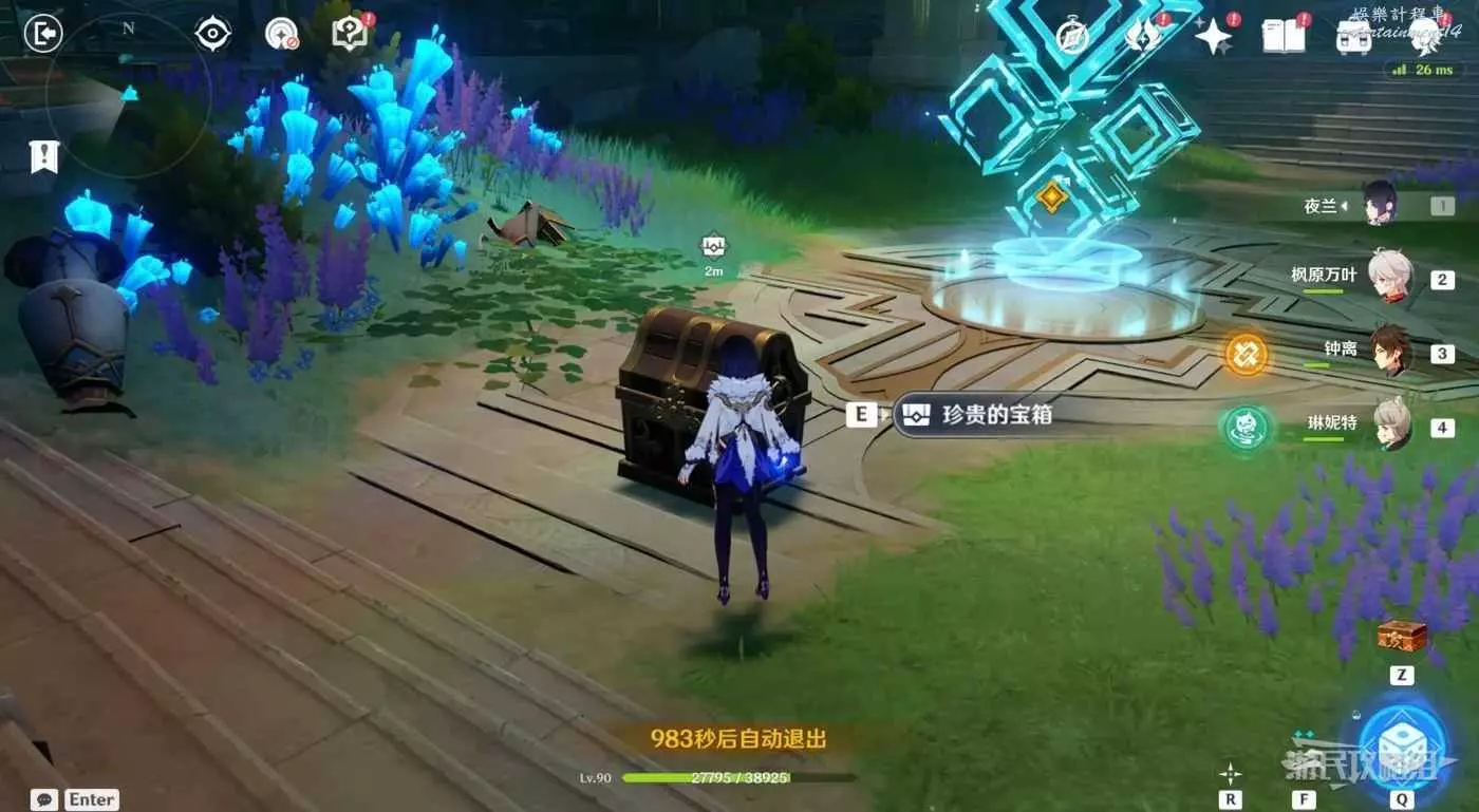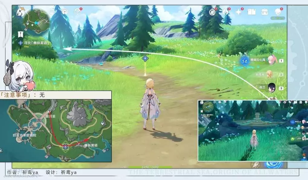 靠近目的地區域自動觸發對話。對話完畢後進入秘境。秘境中有寶箱注意拾取。