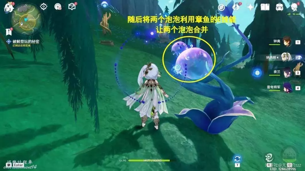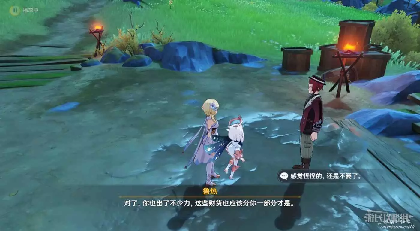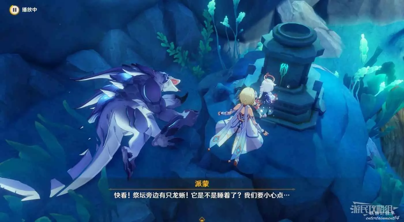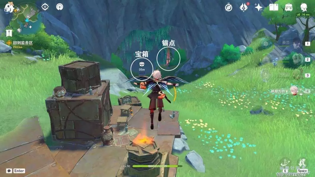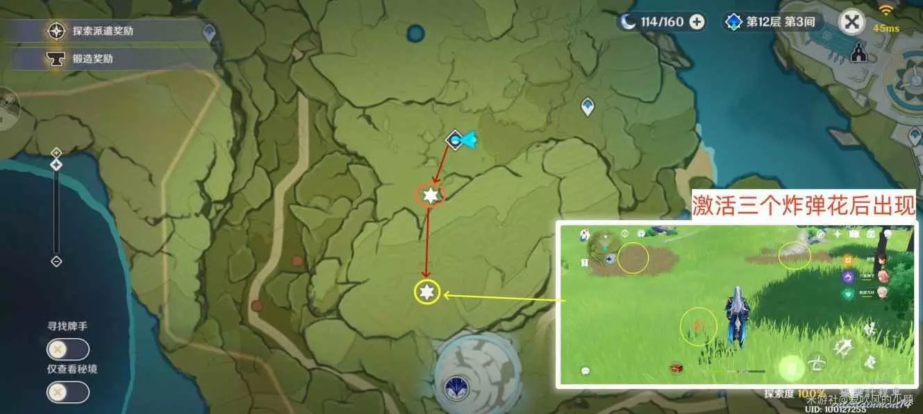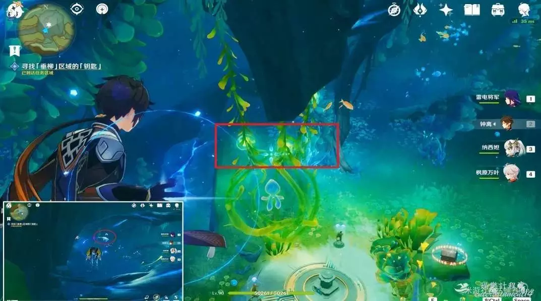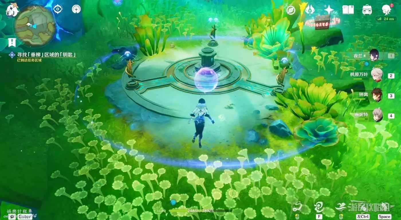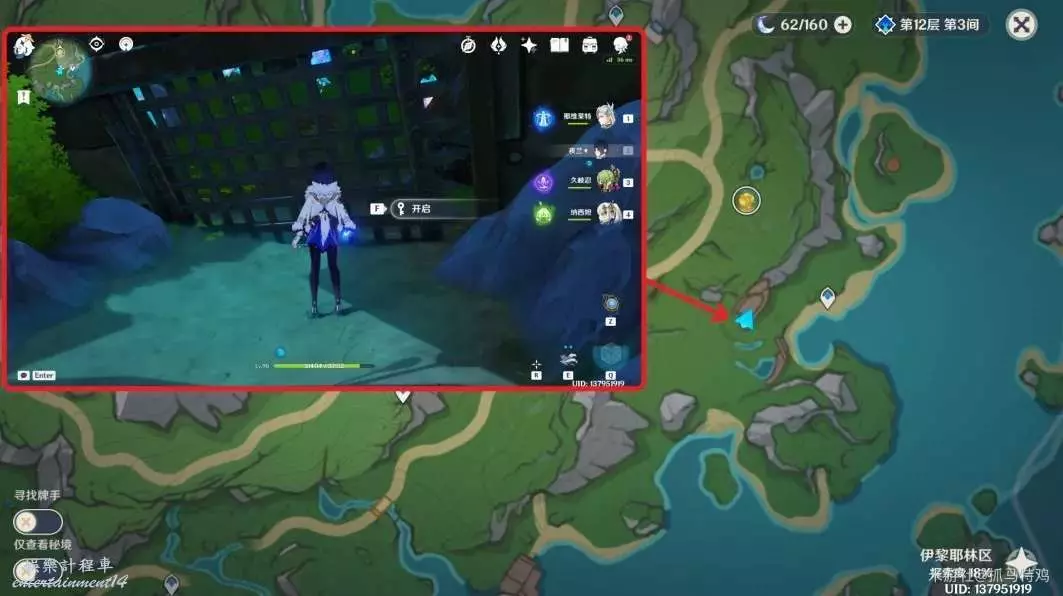 靠近目的地區域自動觸發對話。對話完畢後進入秘境。秘境中有寶箱注意拾取。