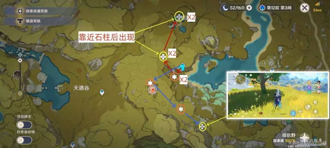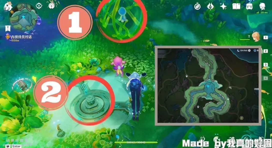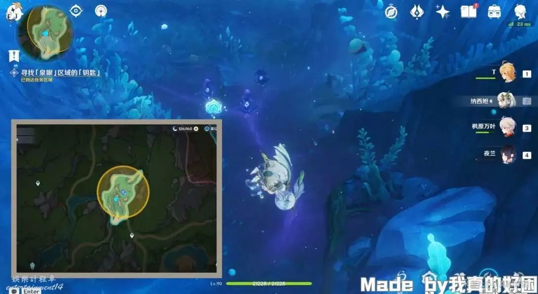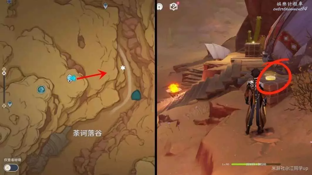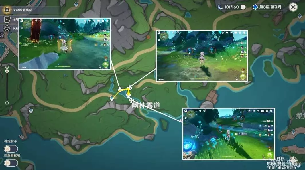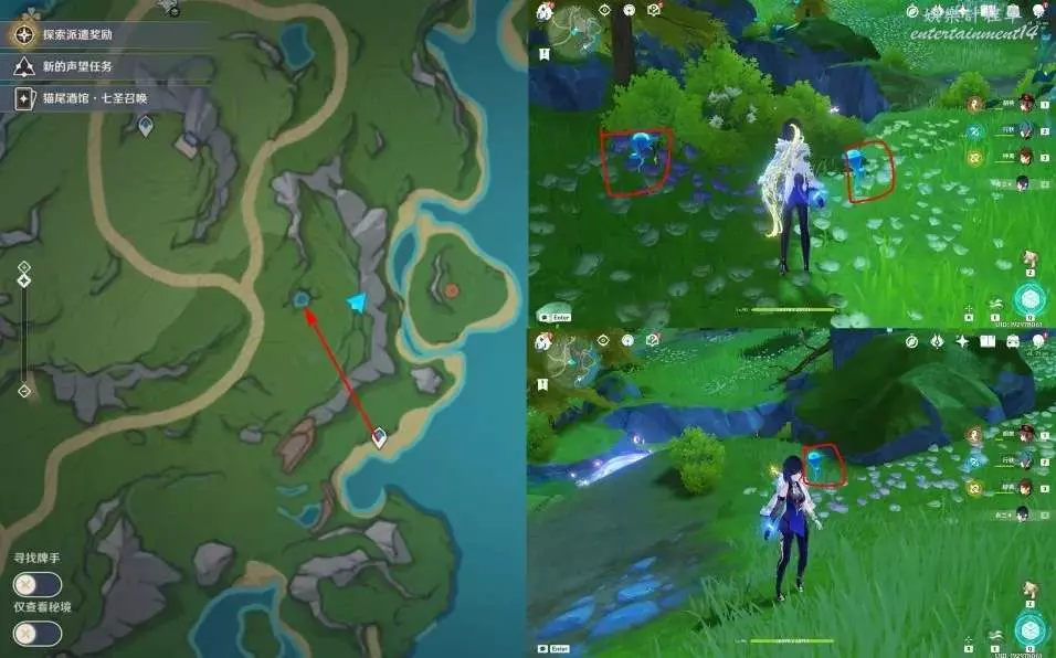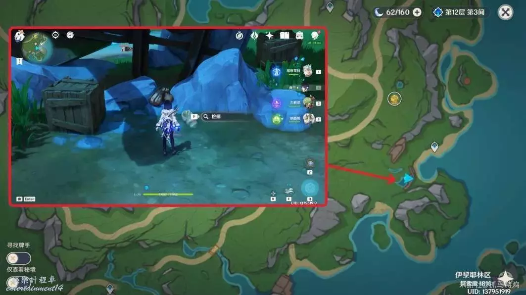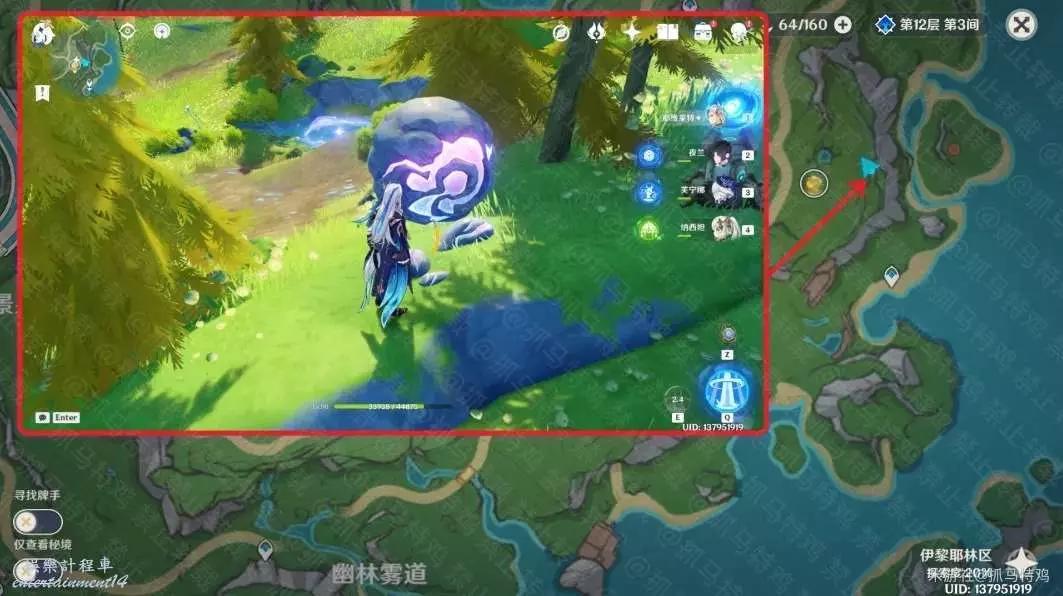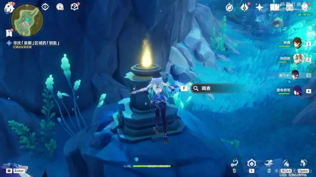 靠近目的地區域自動觸發對話。對話完畢後進入秘境。秘境中有寶箱注意拾取。