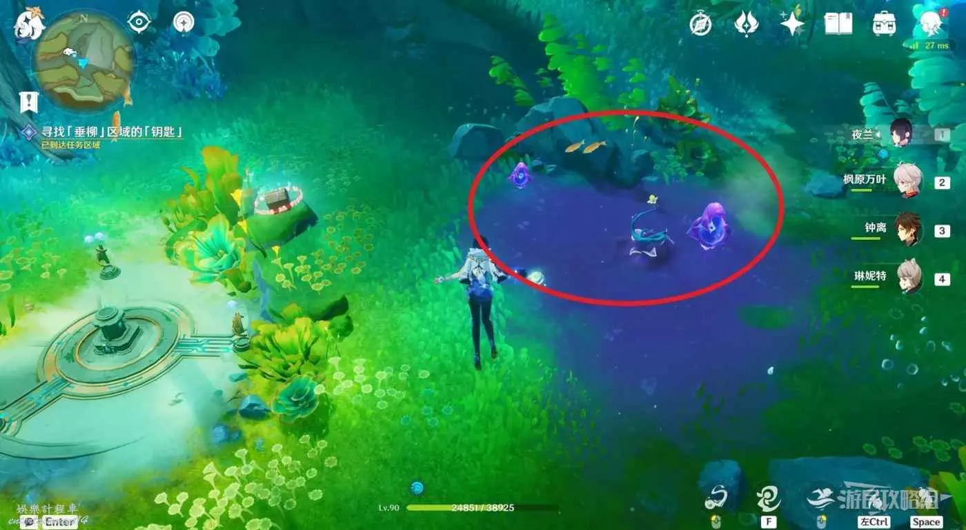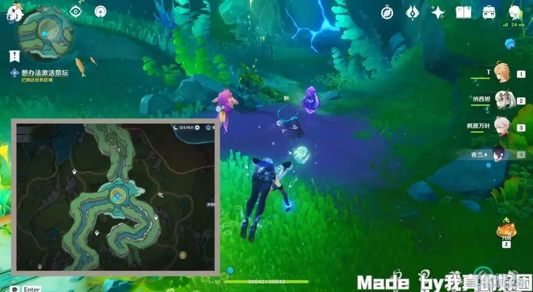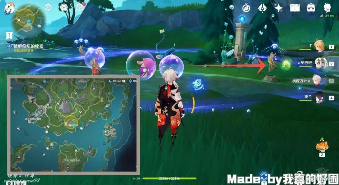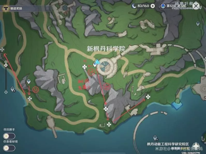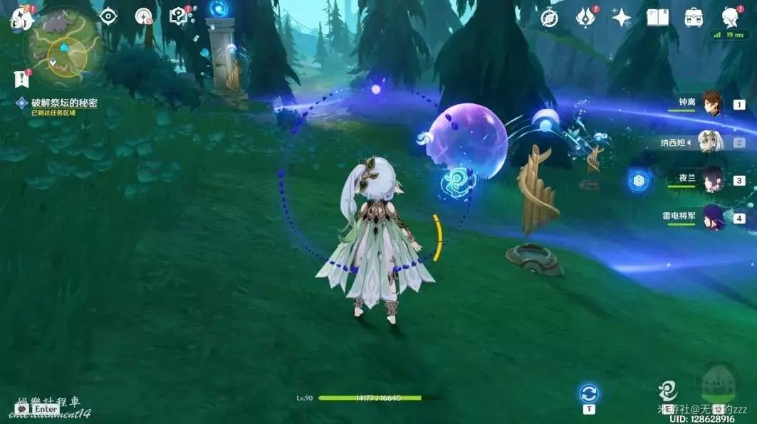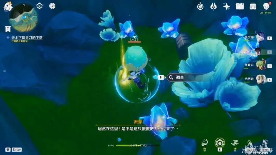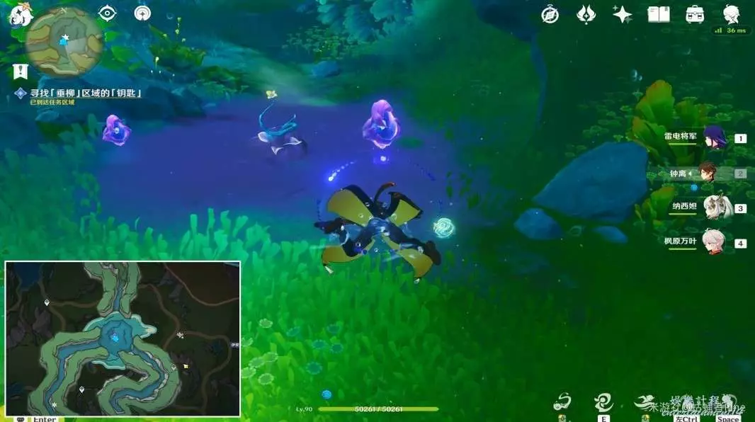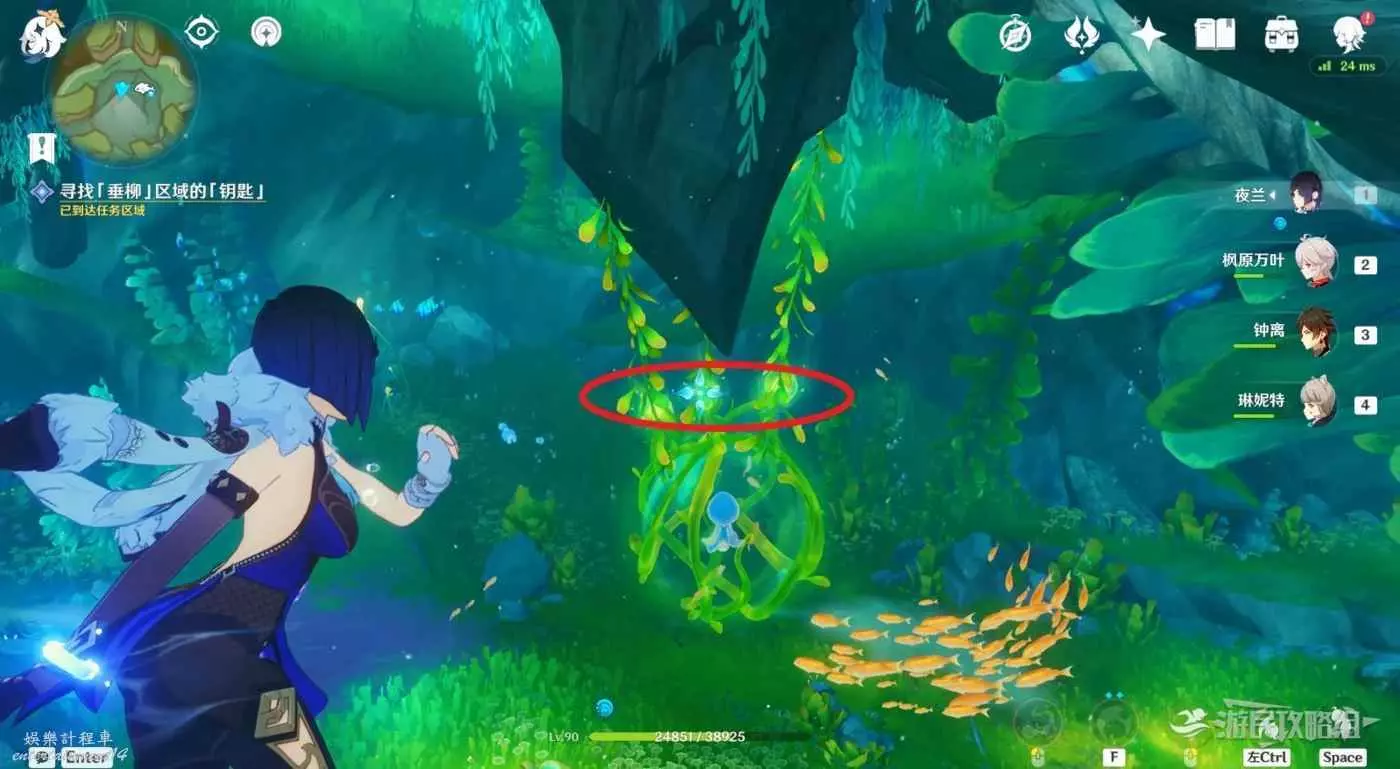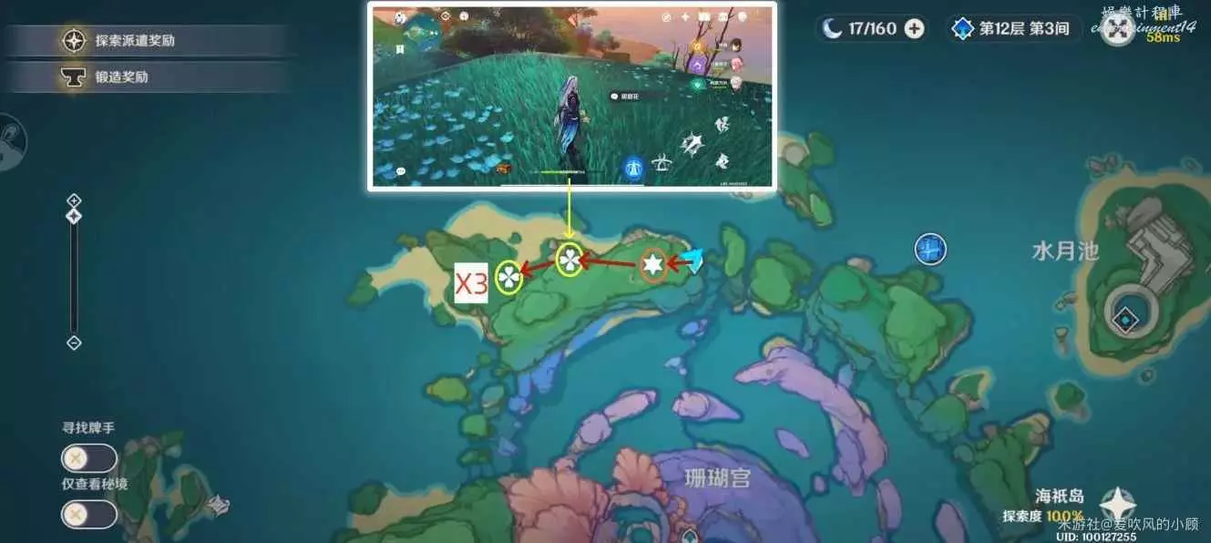 靠近目的地區域自動觸發對話。對話完畢後進入秘境。秘境中有寶箱注意拾取。