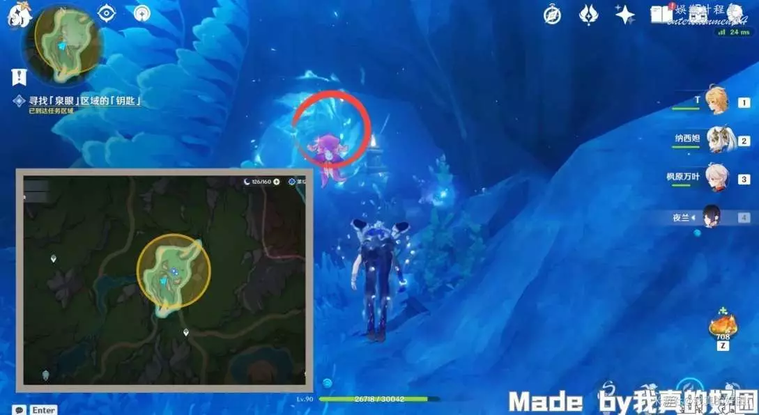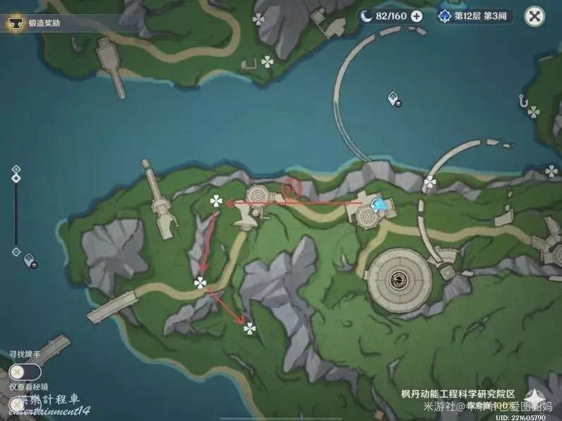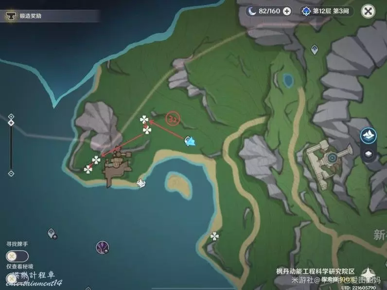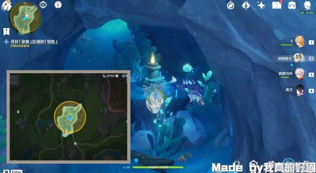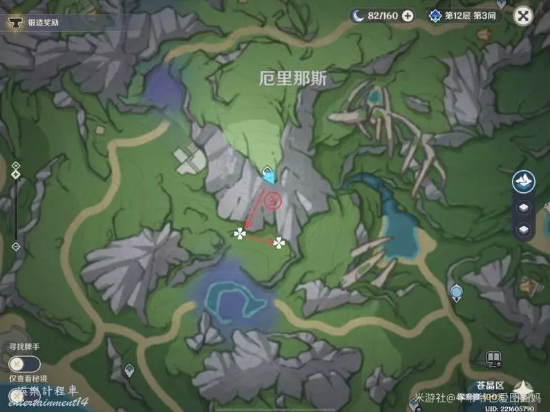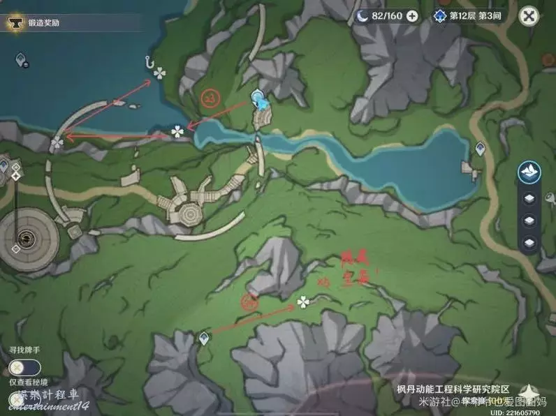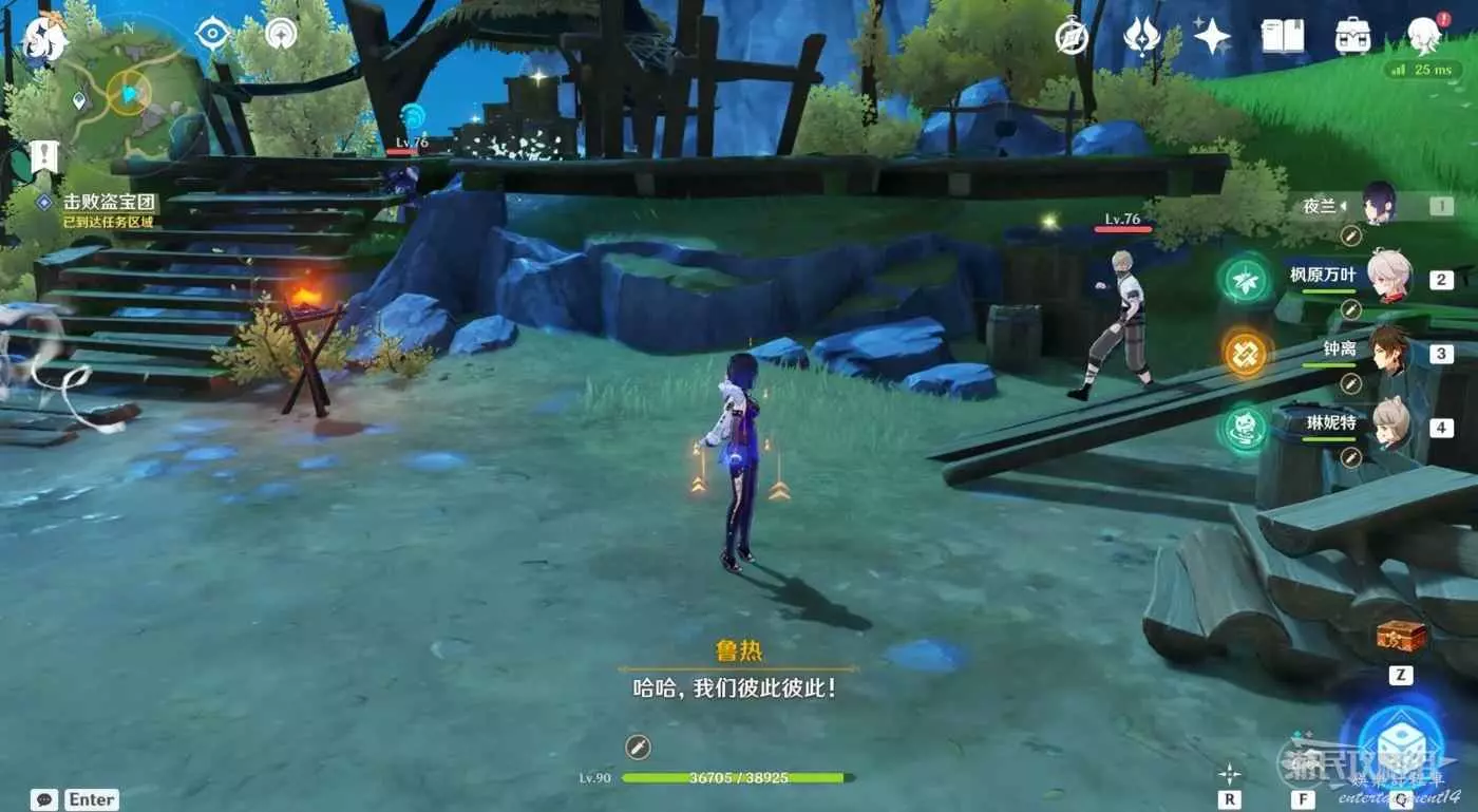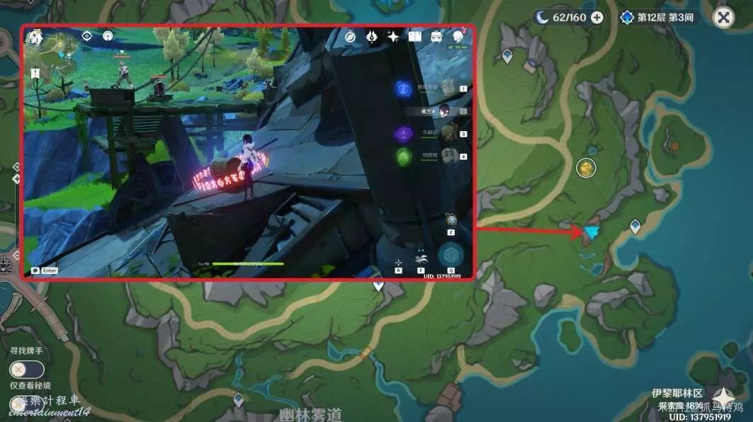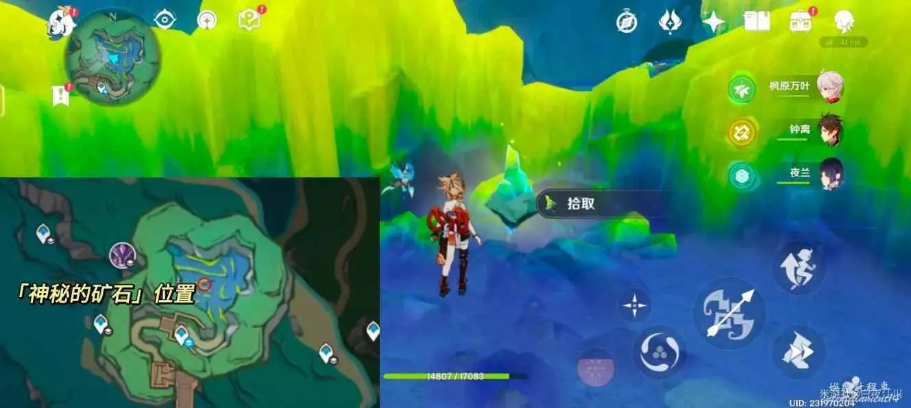 靠近目的地區域自動觸發對話。對話完畢後進入秘境。秘境中有寶箱注意拾取。