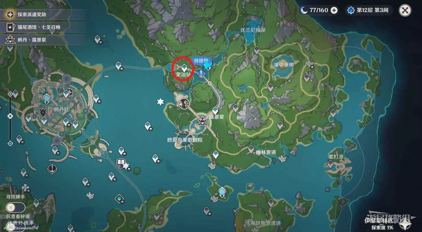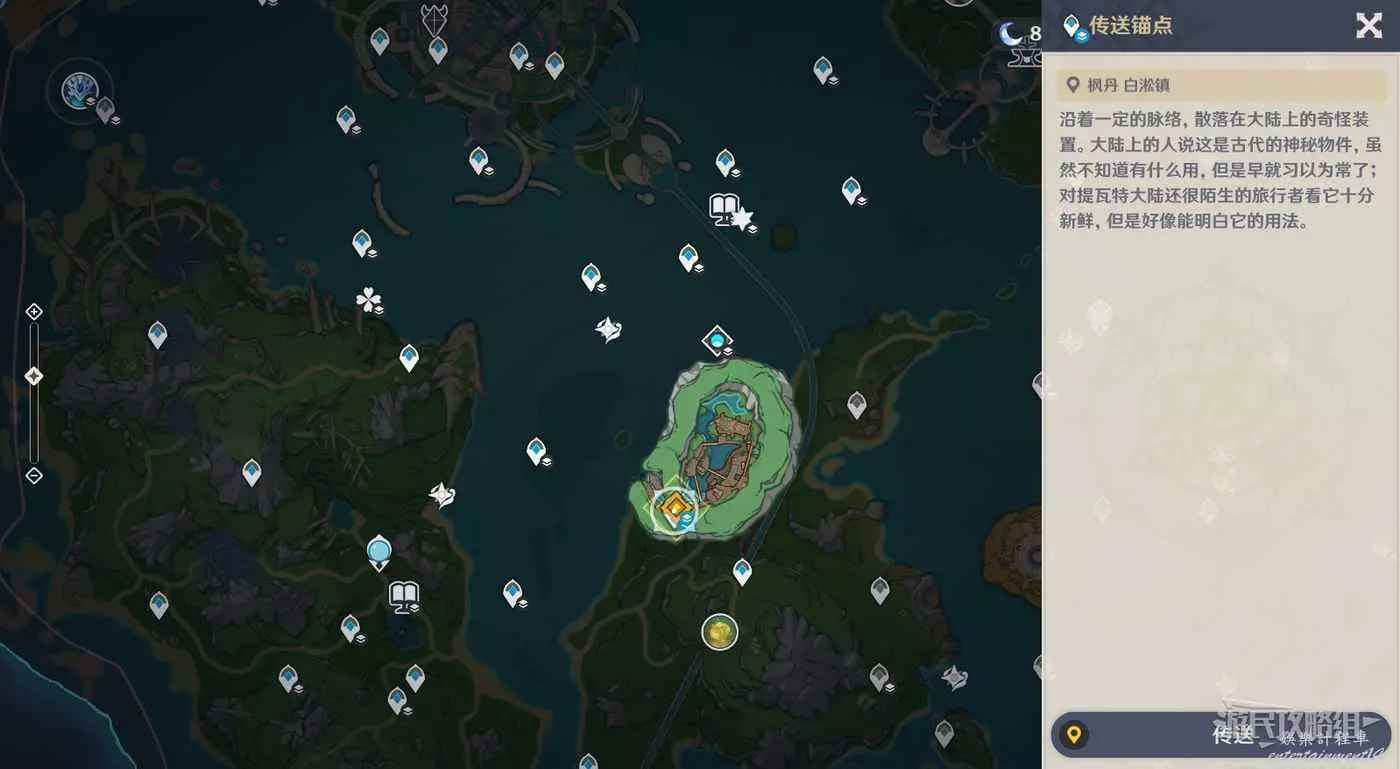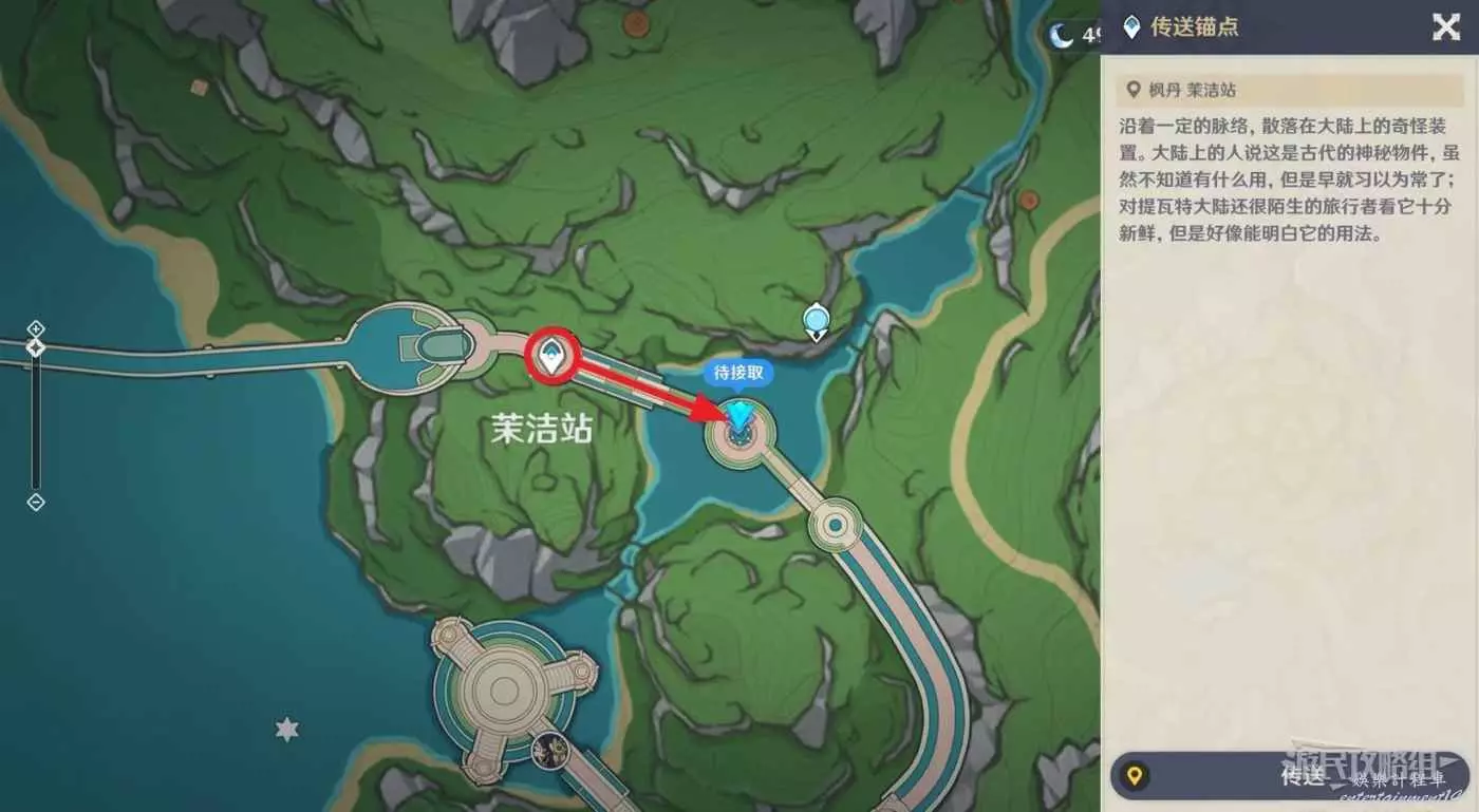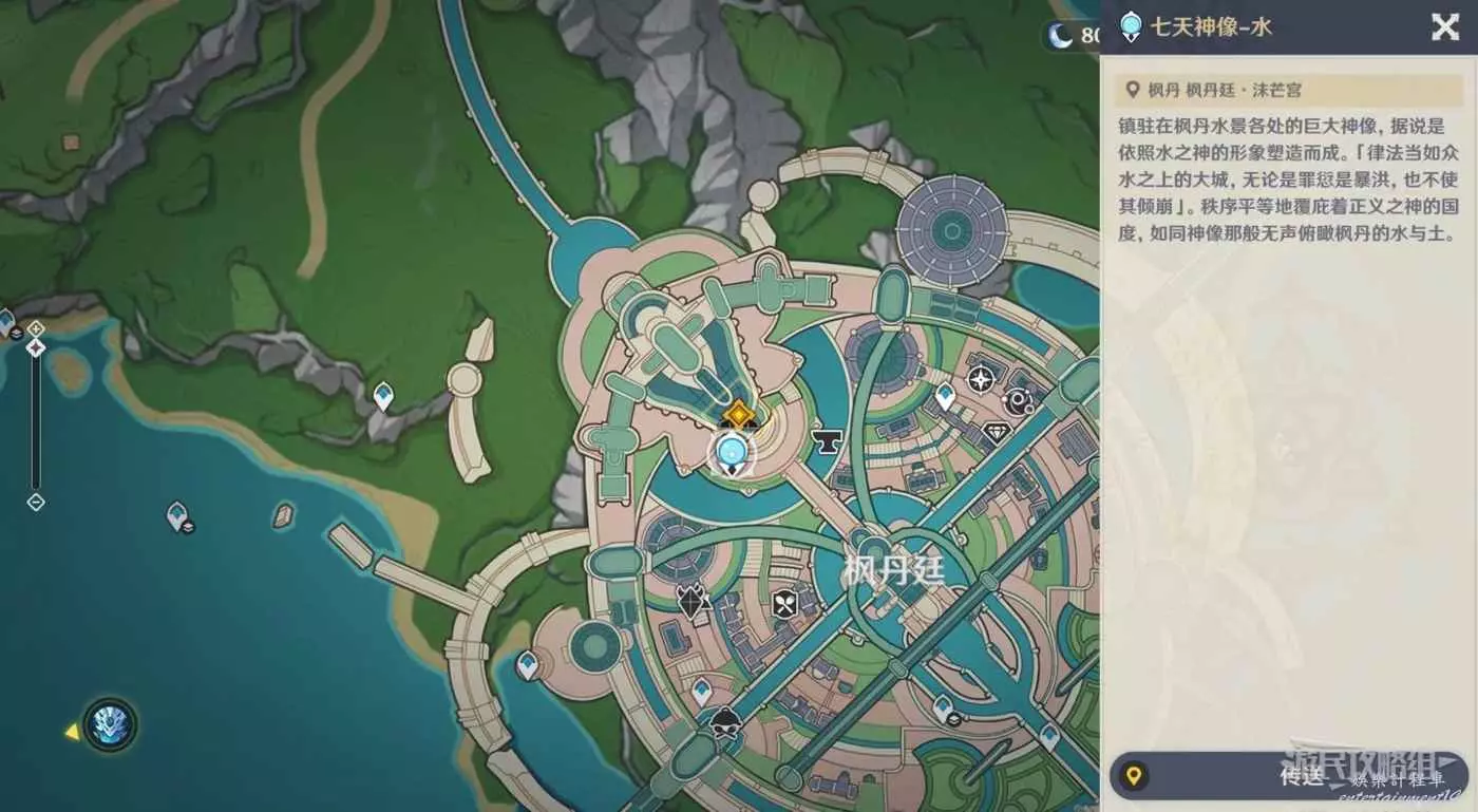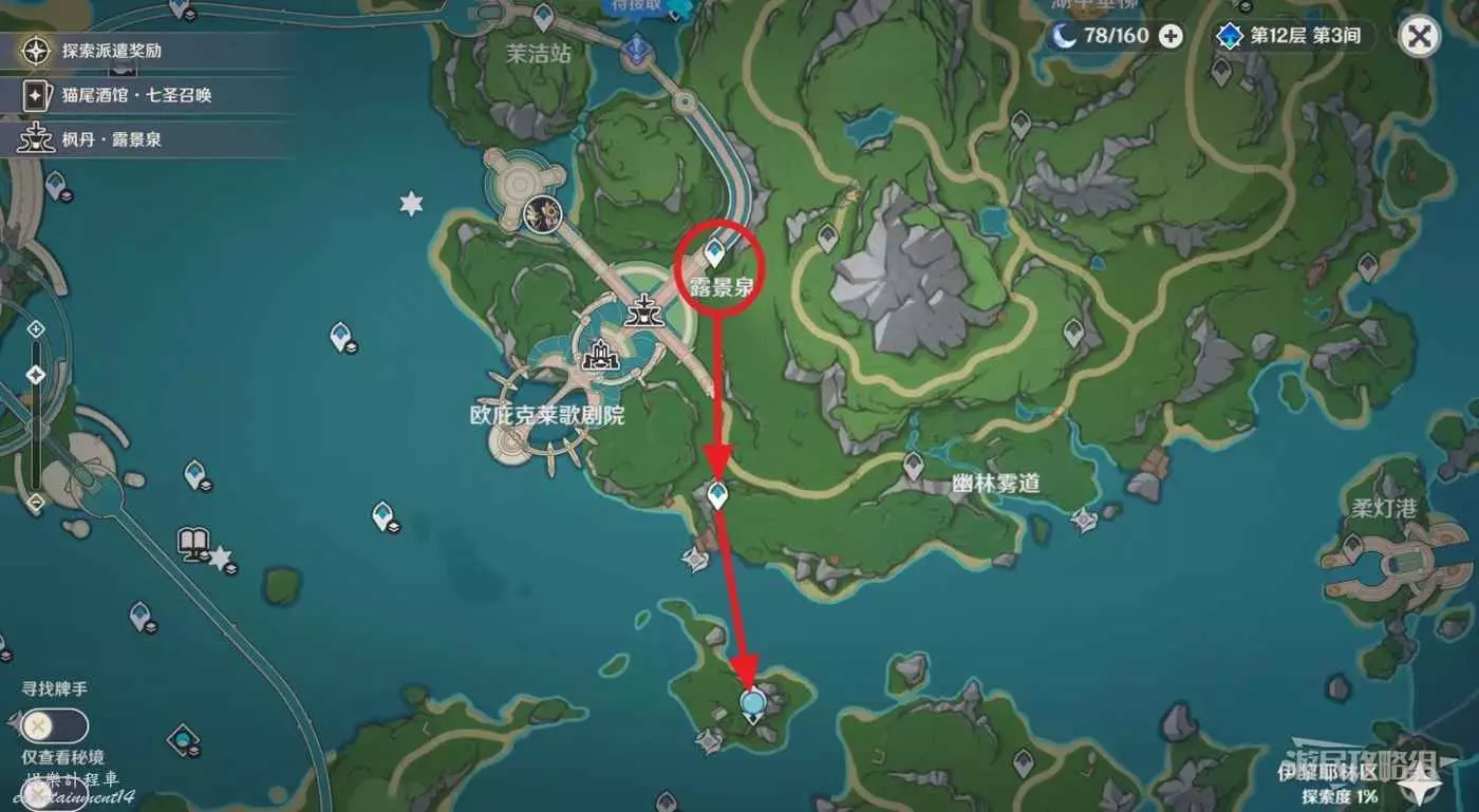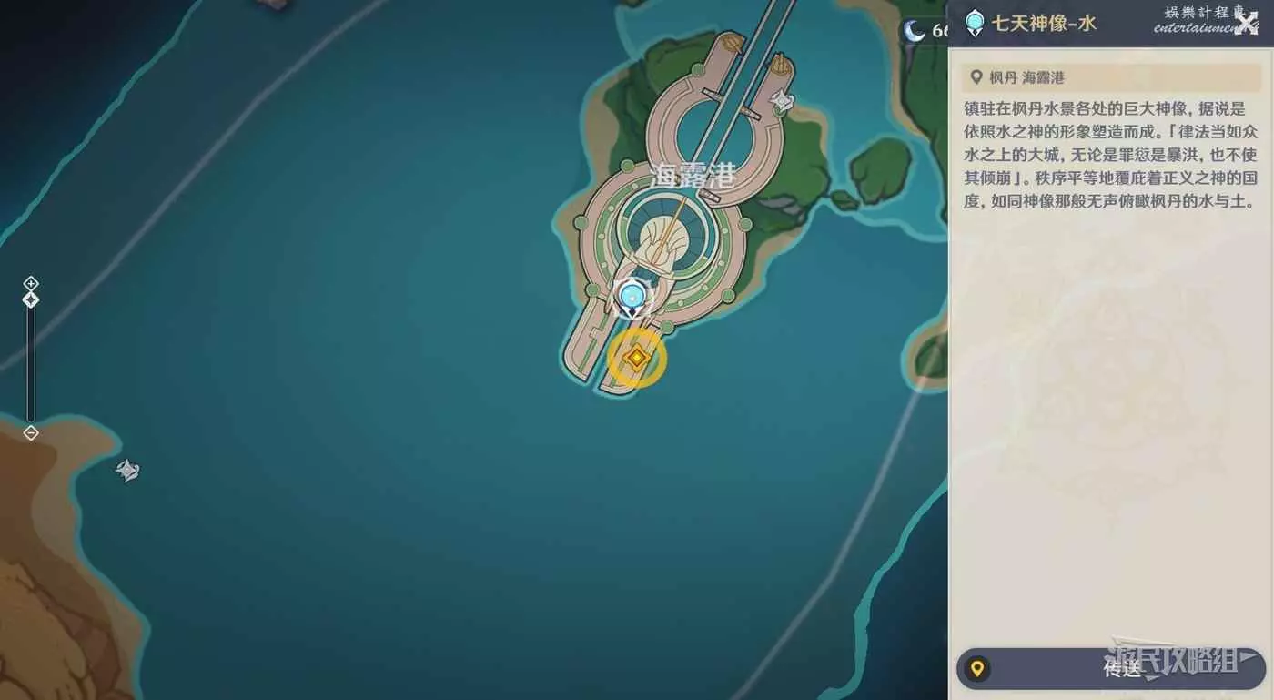劇情結束後,傳送到海露港旁邊的七天神像,前往目標位置。