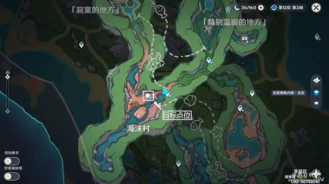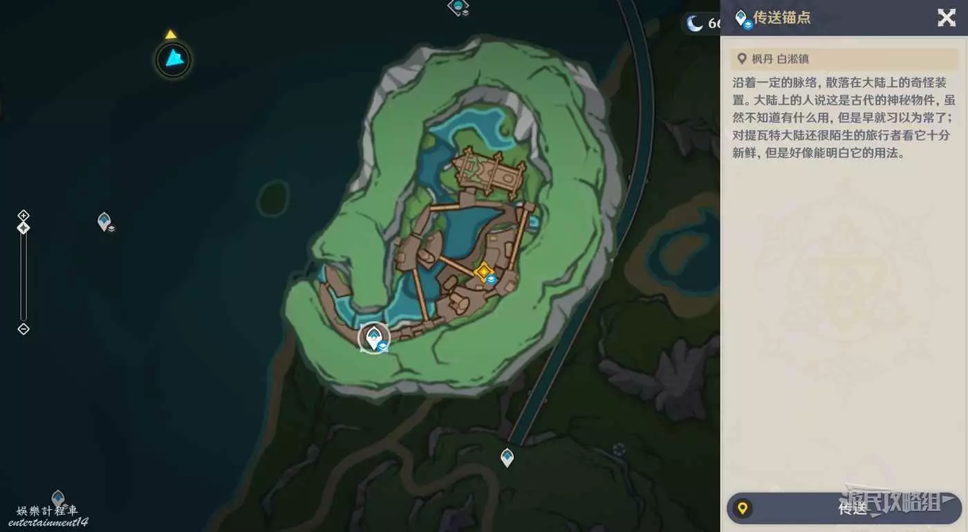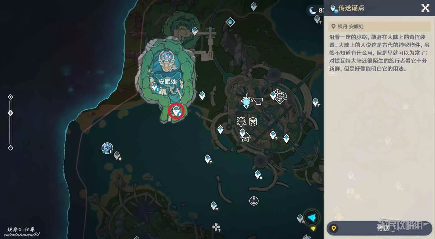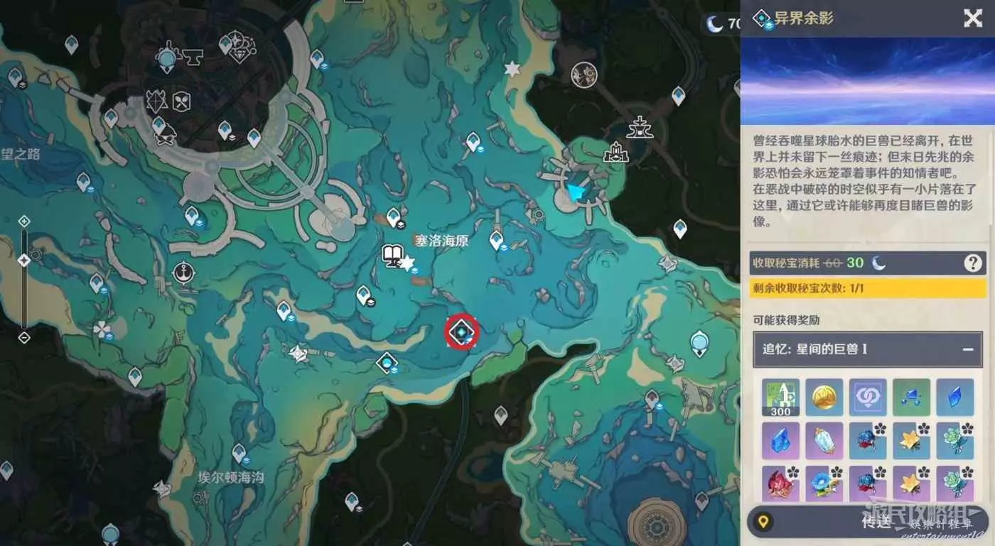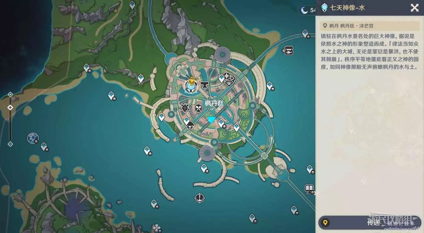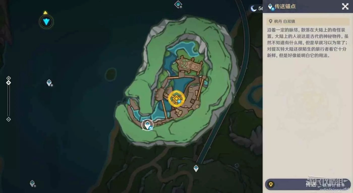 劇情結束後,傳送到海露港旁邊的七天神像,前往目標位置。