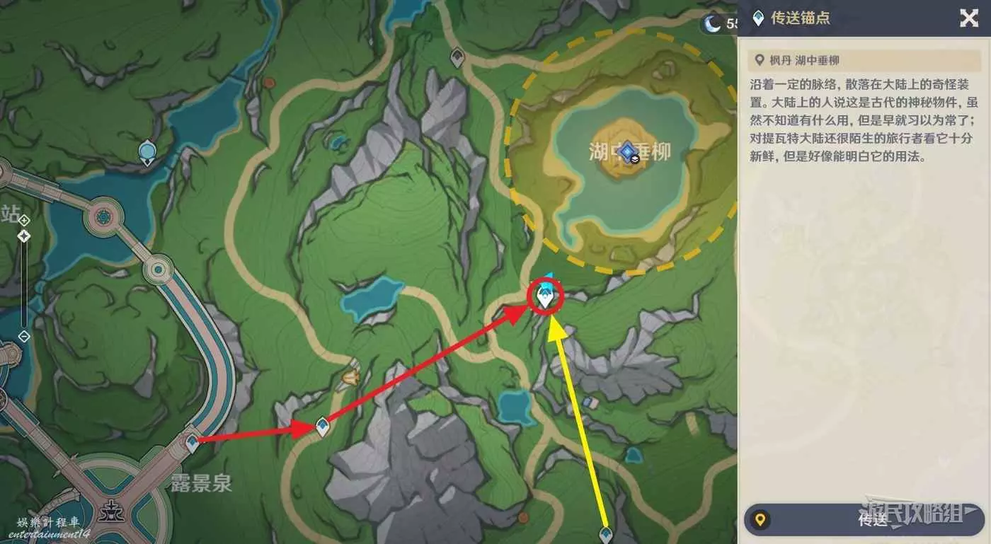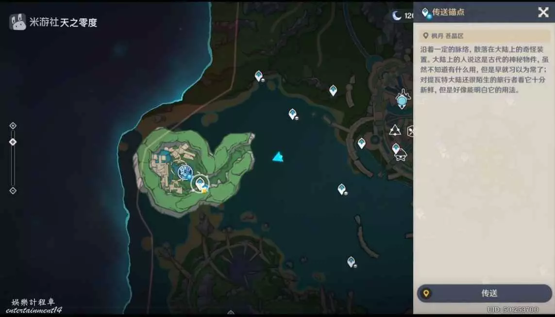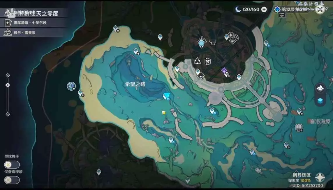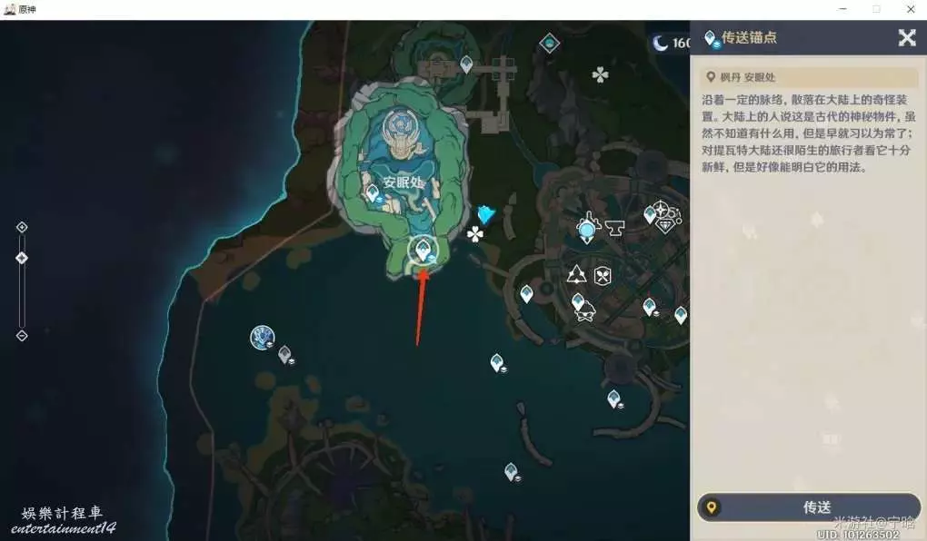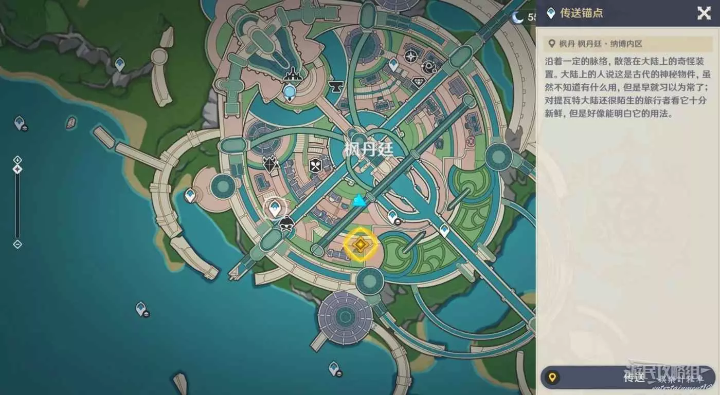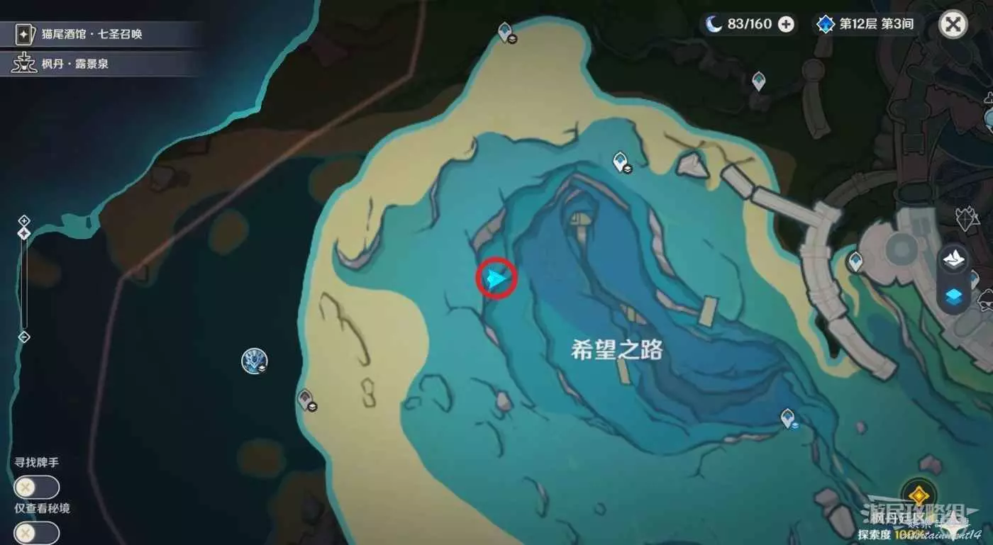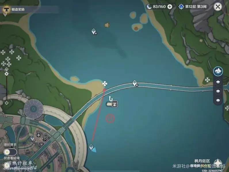 劇情結束後,傳送到海露港旁邊的七天神像,前往目標位置。
