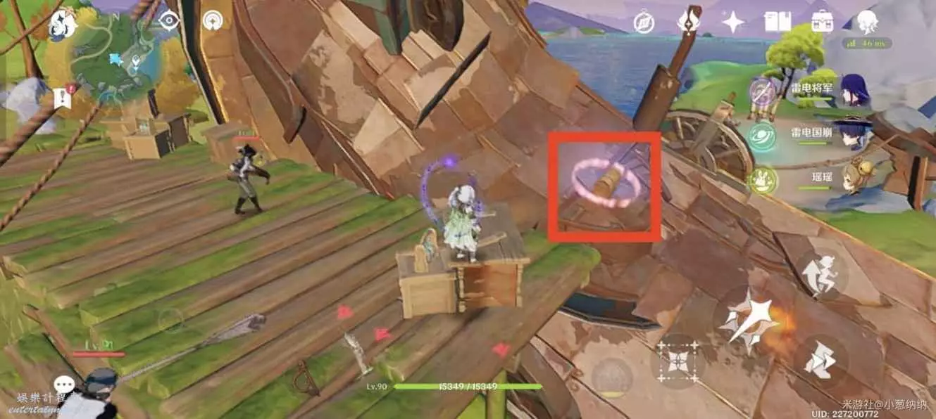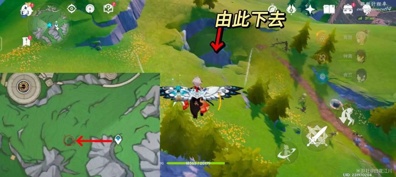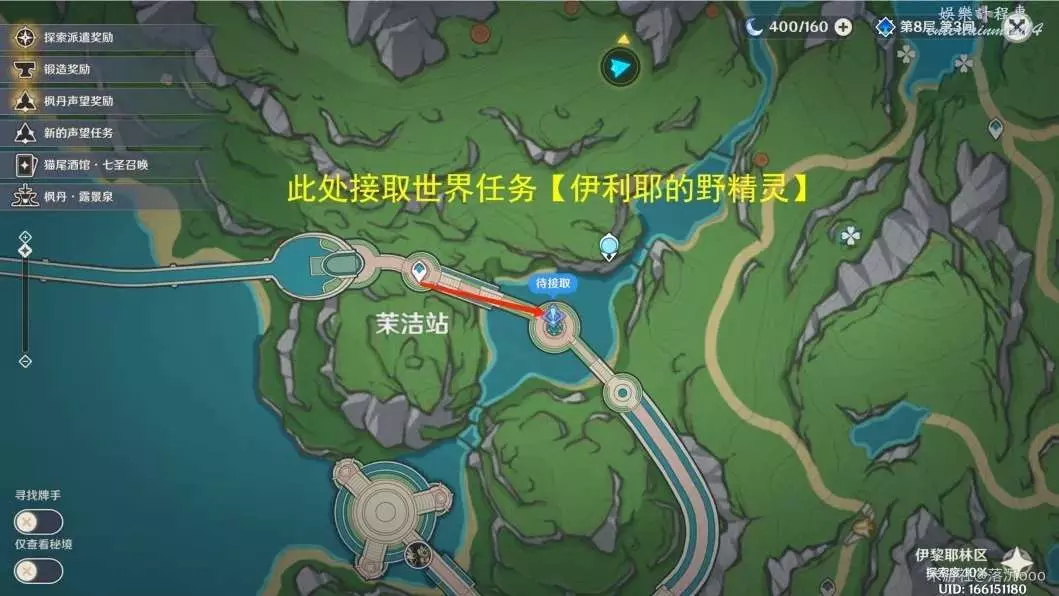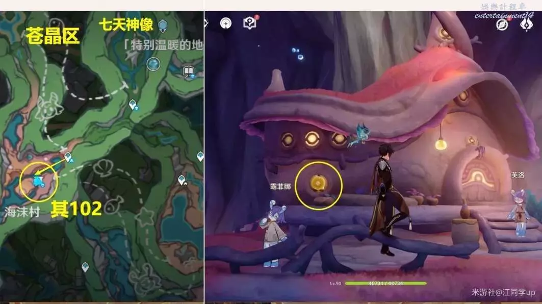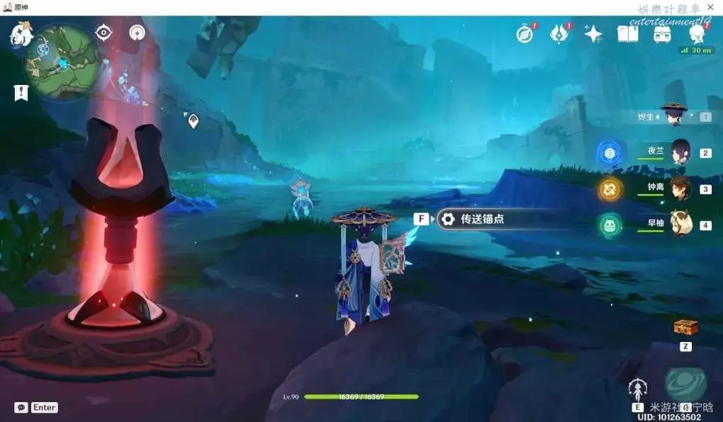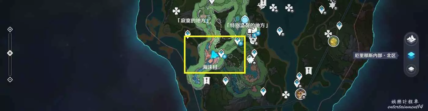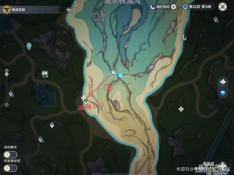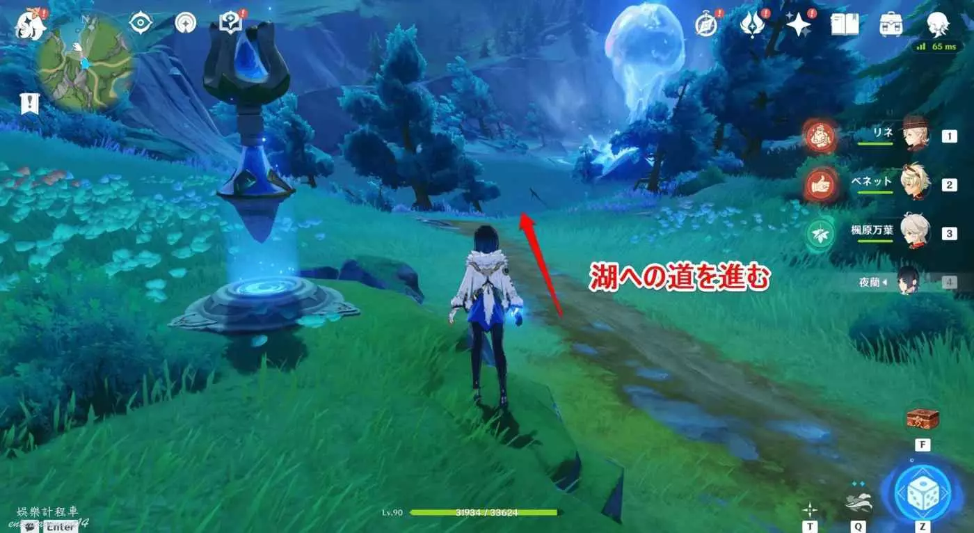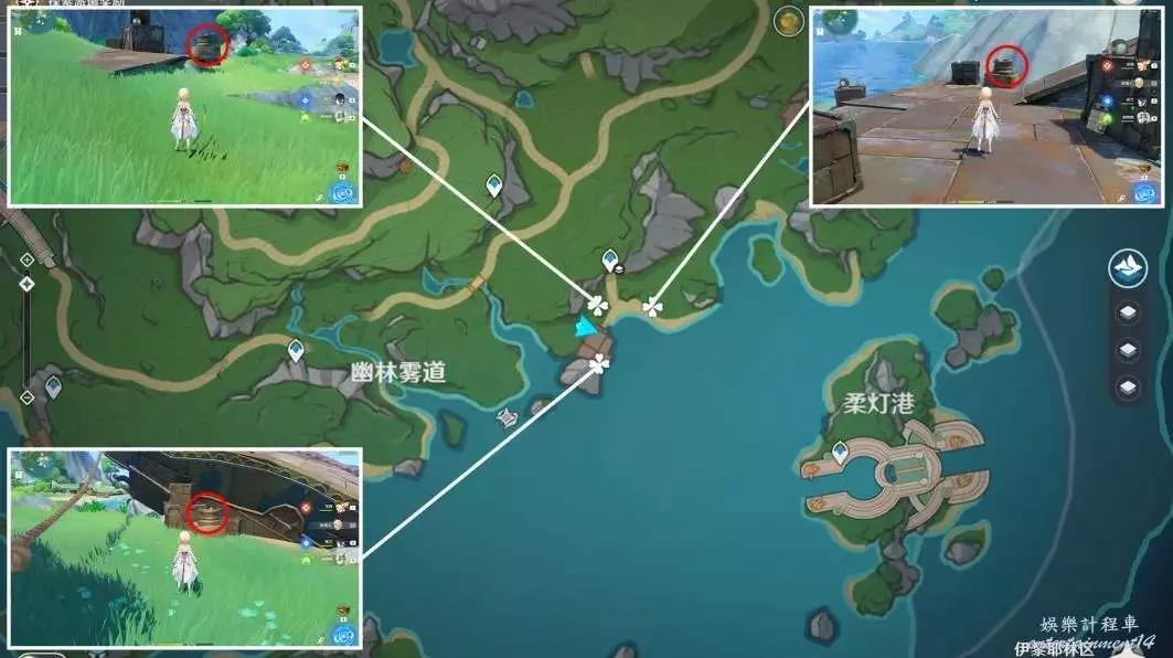 劇情結束後,傳送到海露港旁邊的七天神像,前往目標位置。