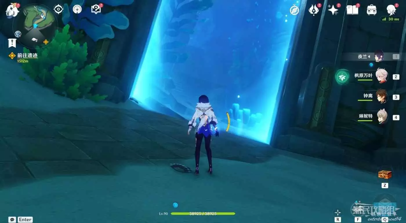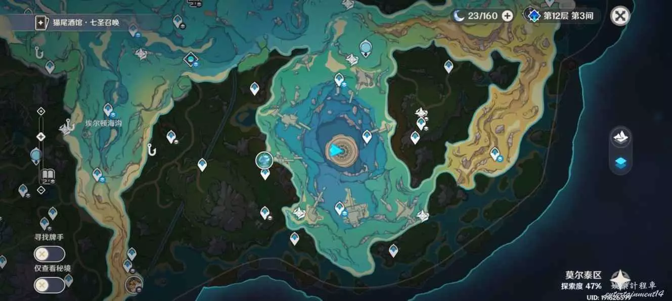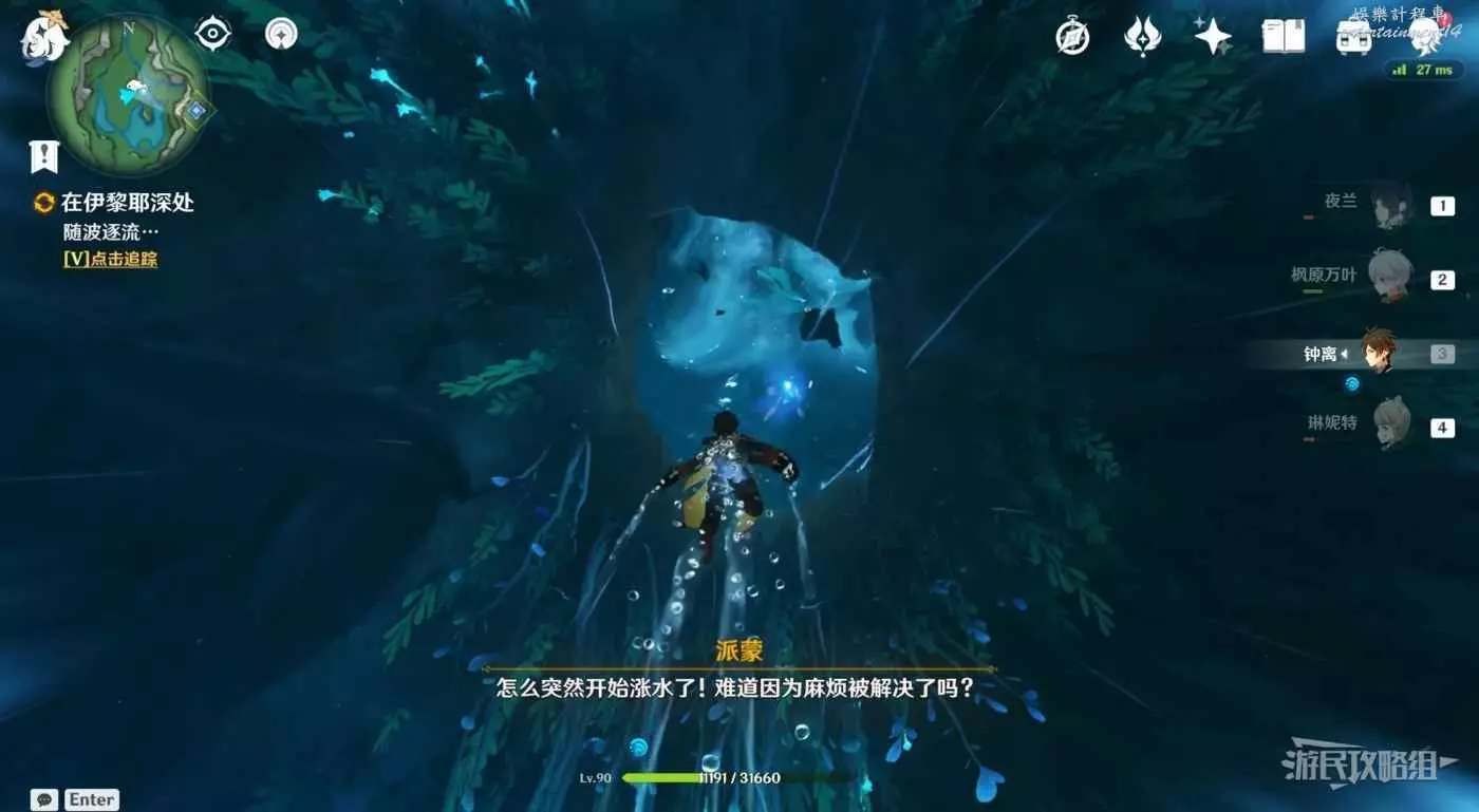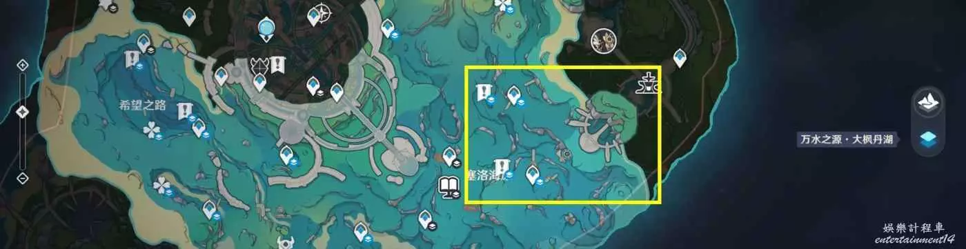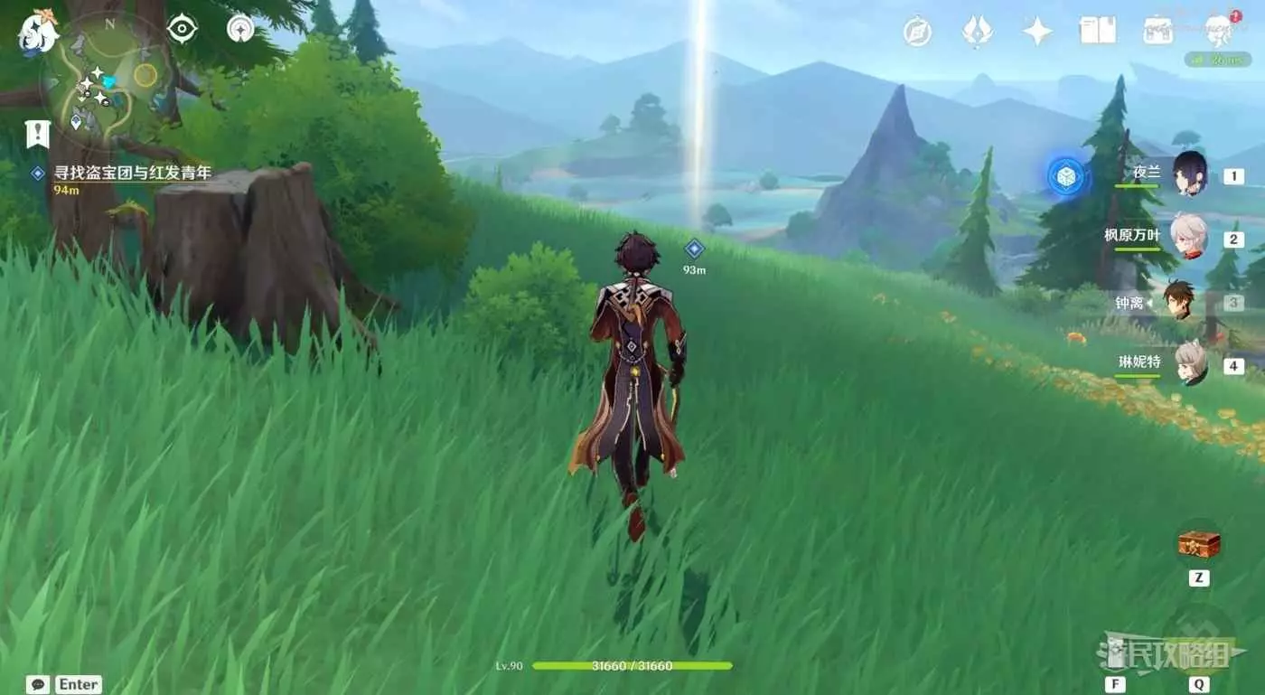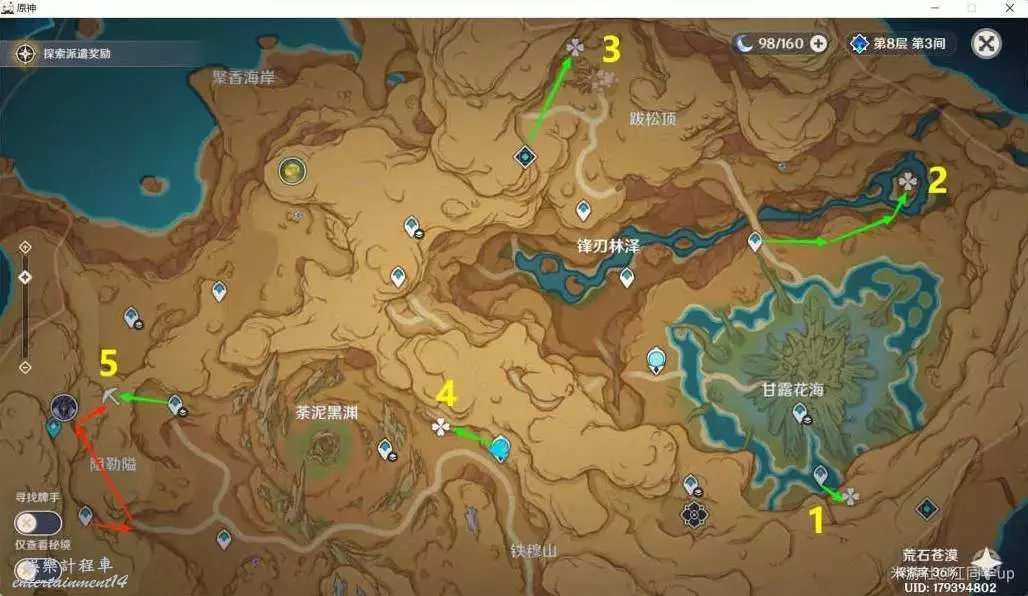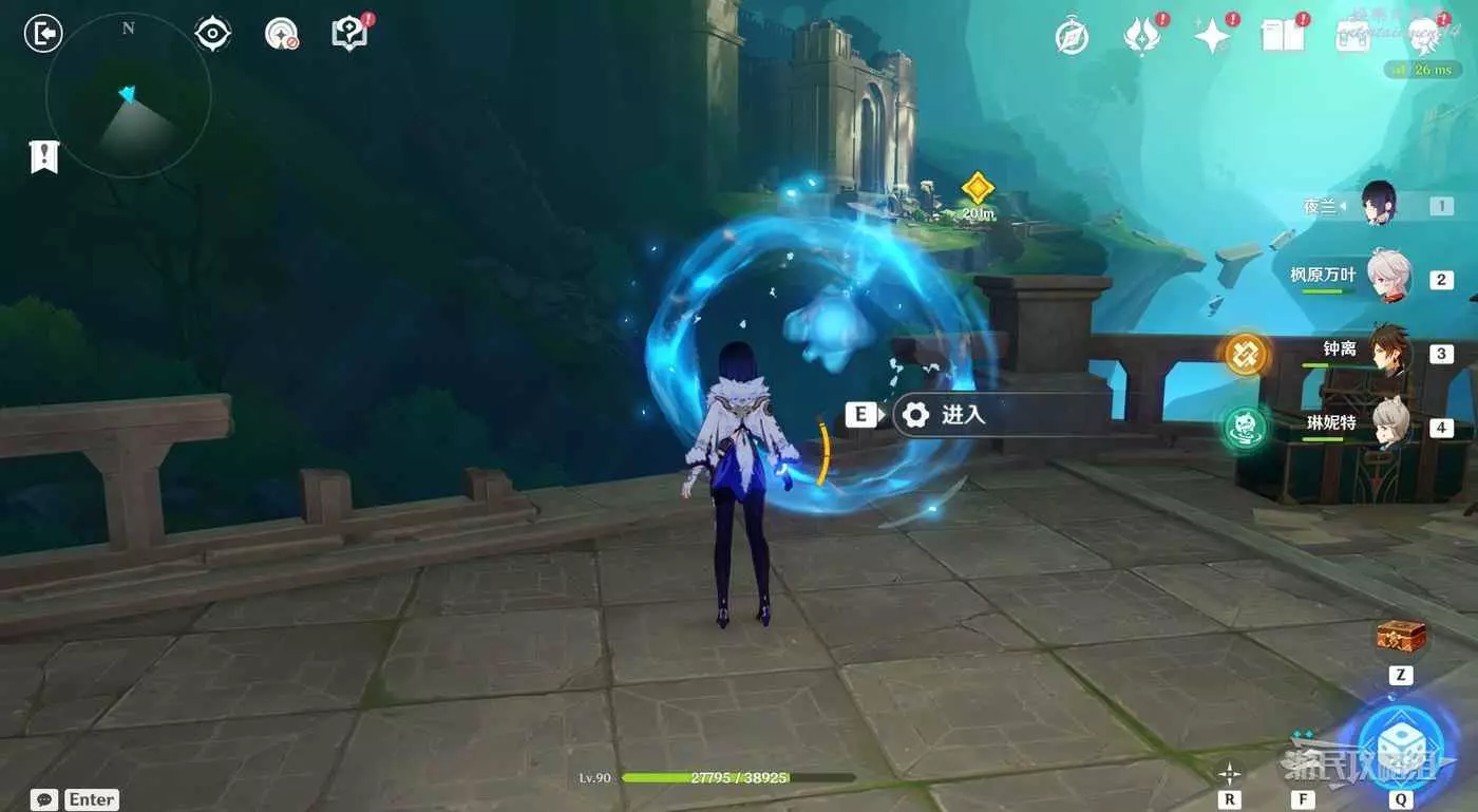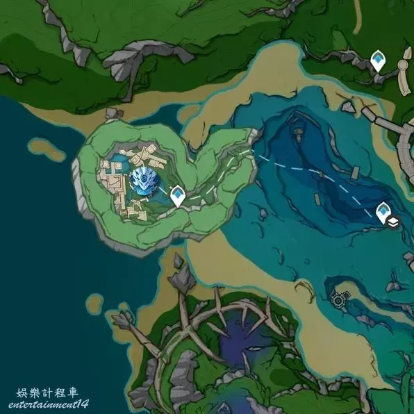 劇情結束後,傳送到海露港旁邊的七天神像,前往目標位置。