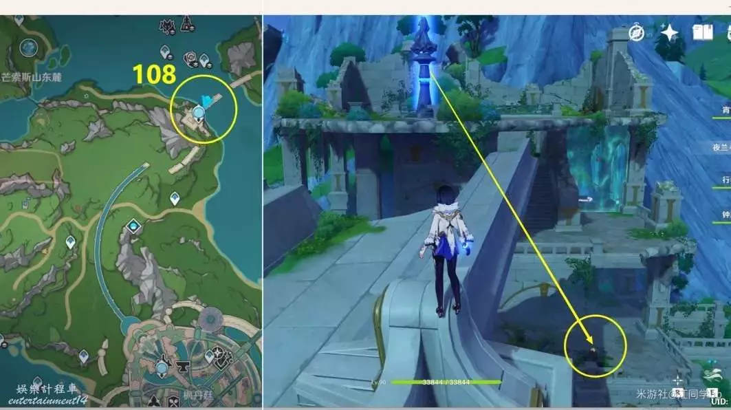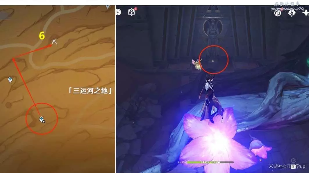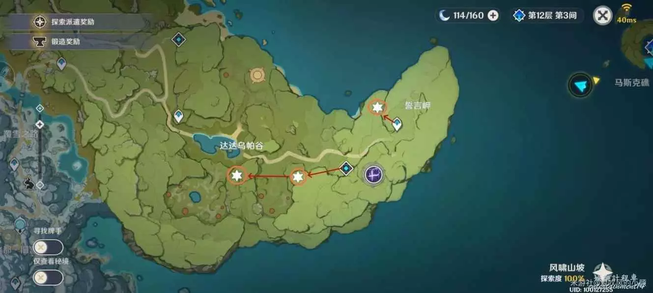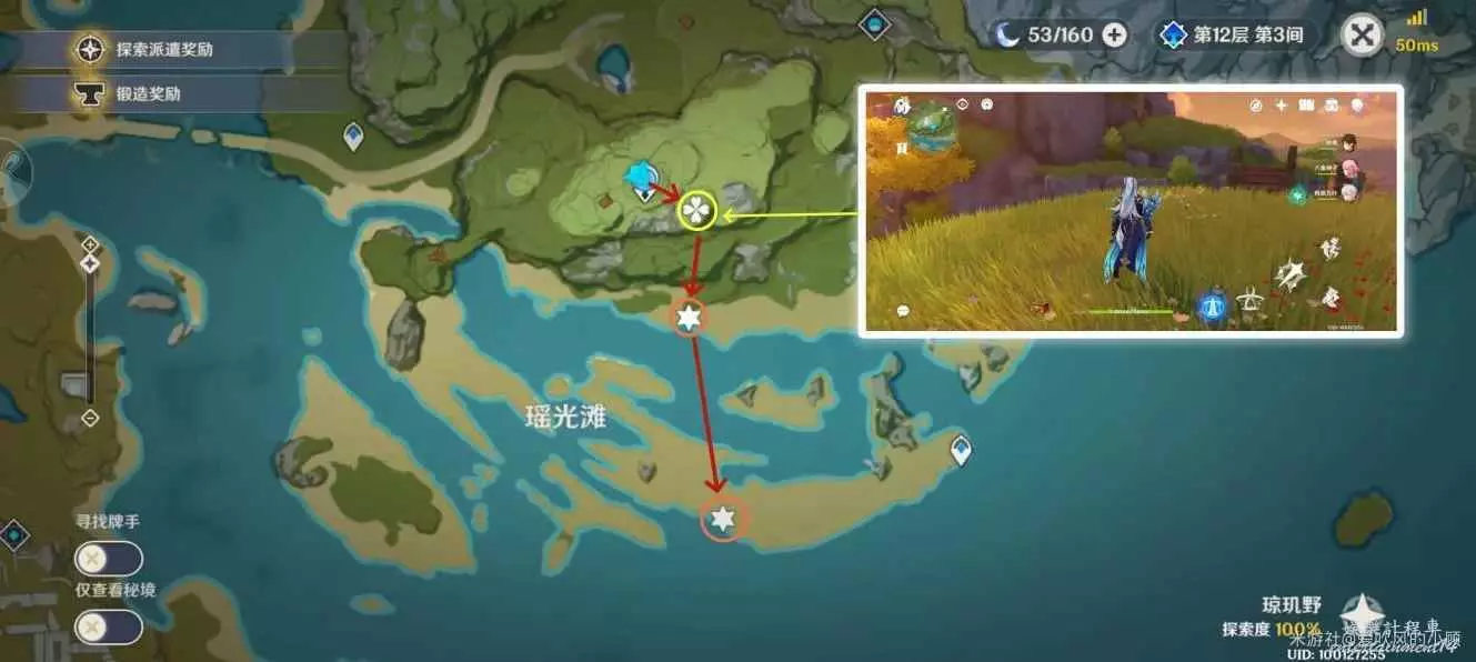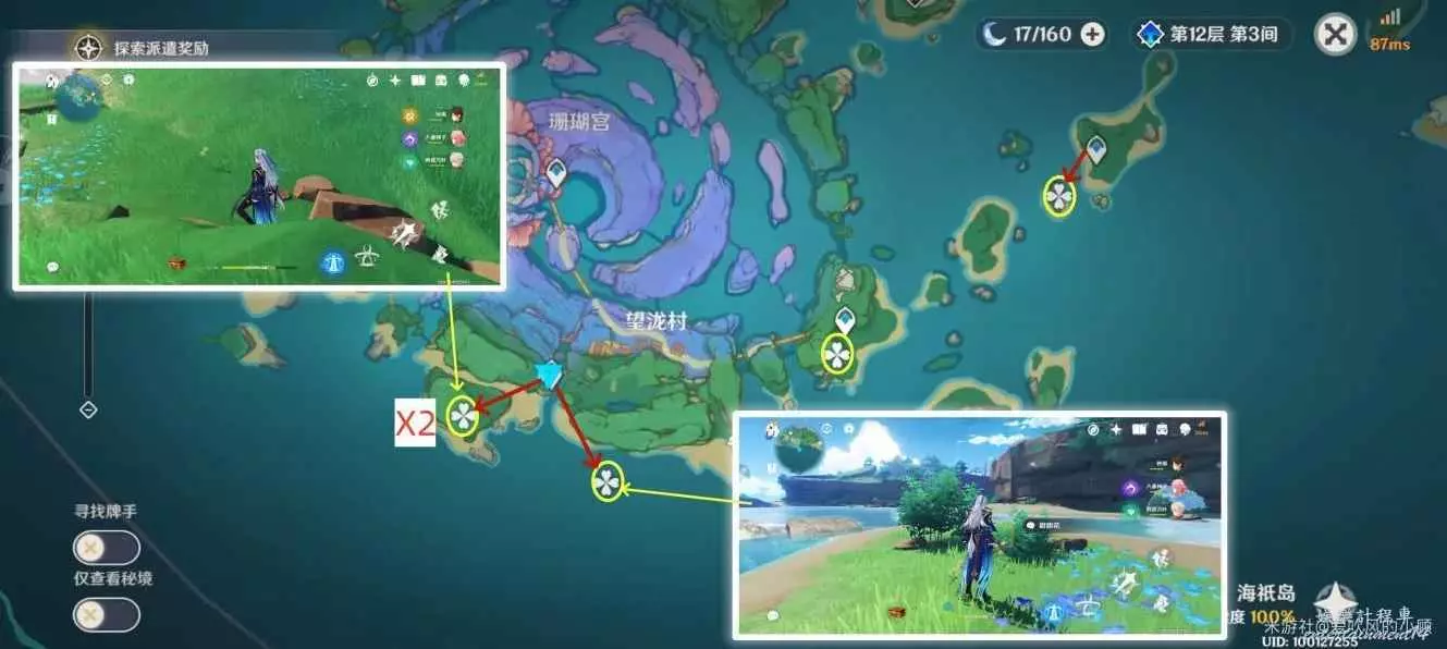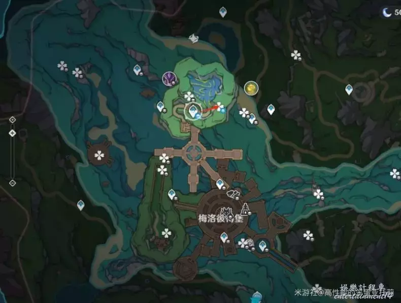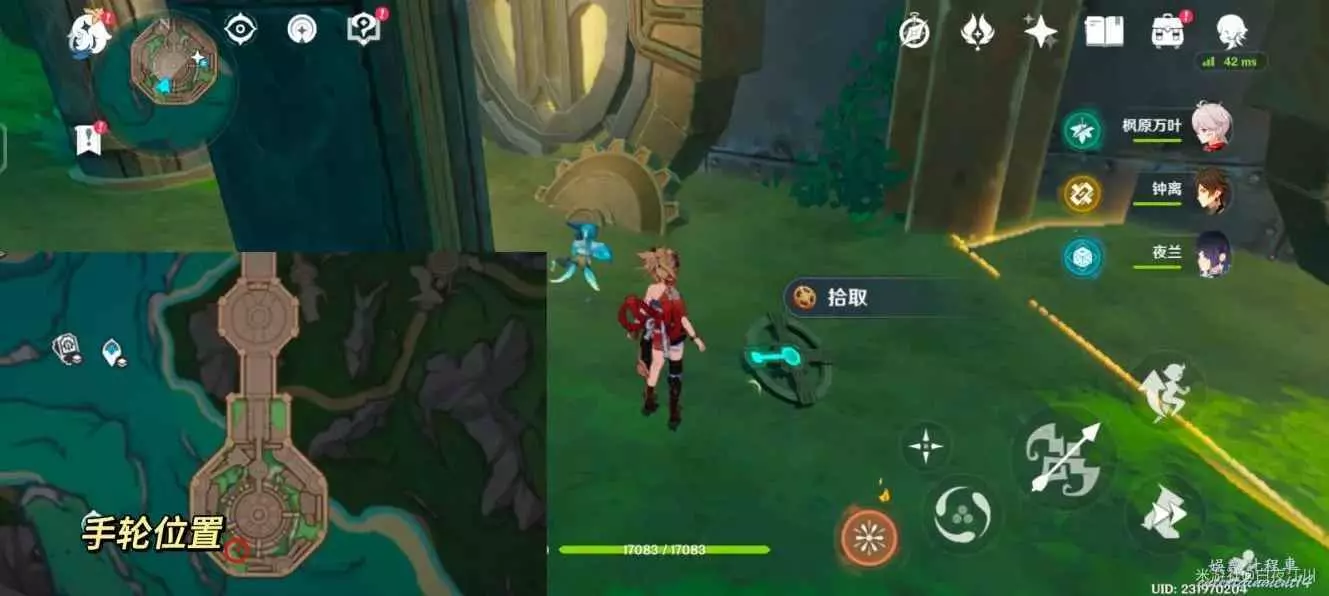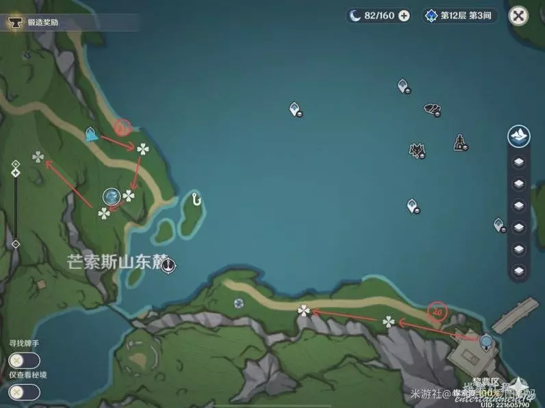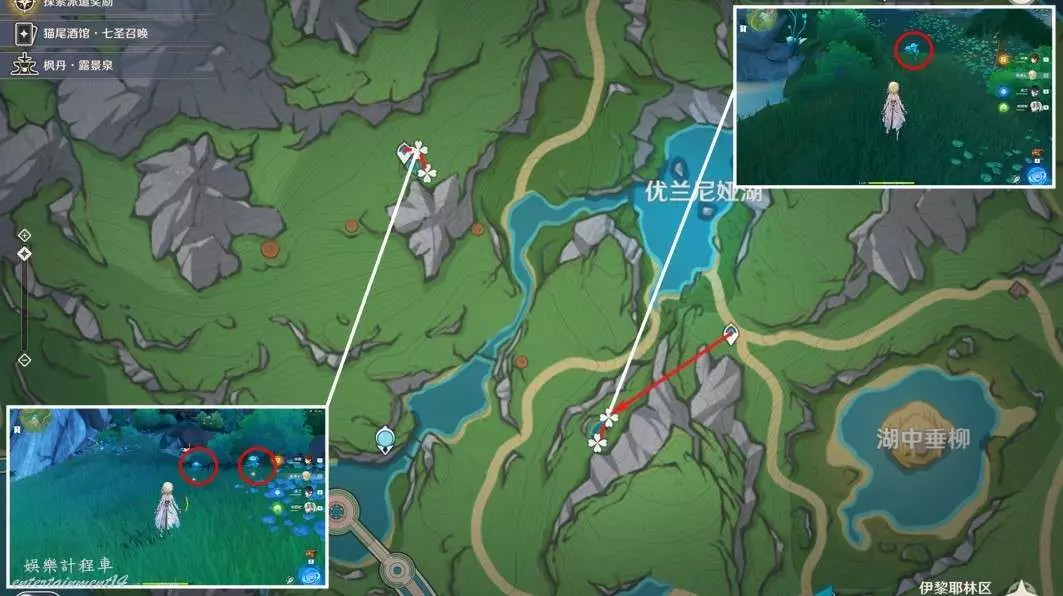 劇情結束後,傳送到海露港旁邊的七天神像,前往目標位置。