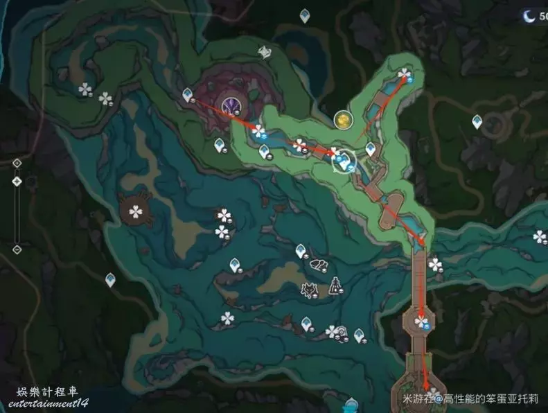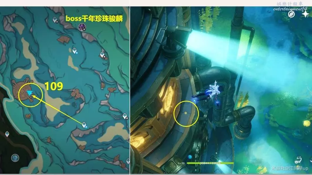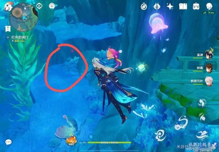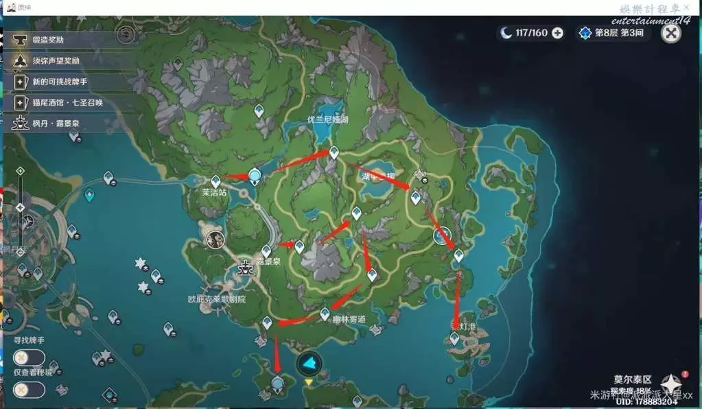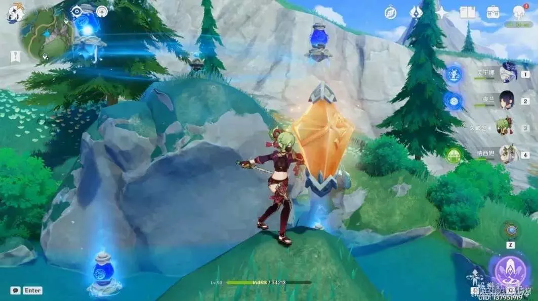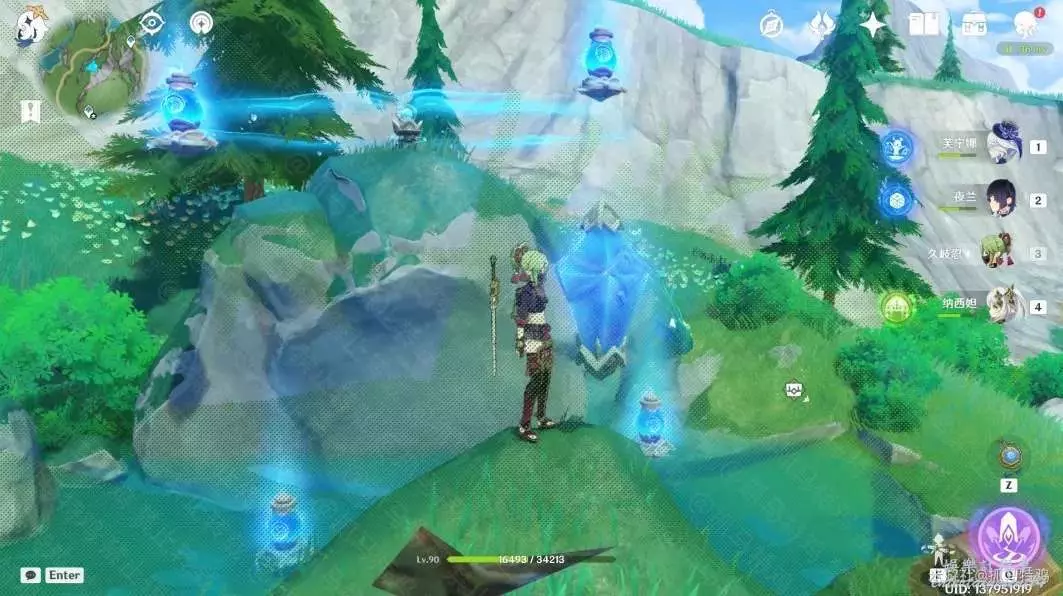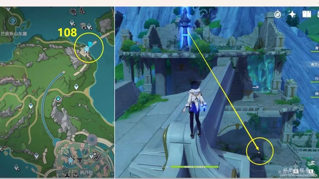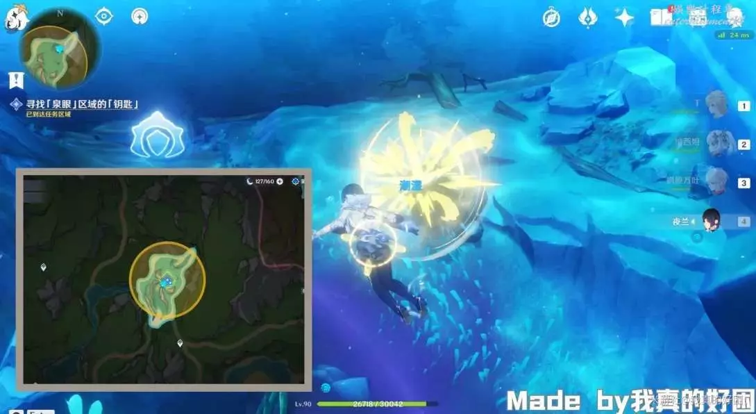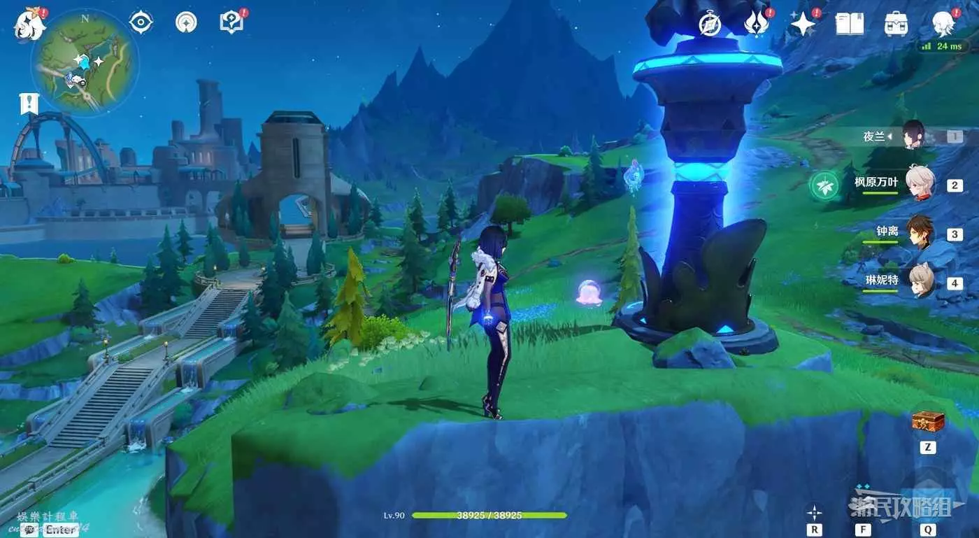劇情結束後,傳送到海露港旁邊的七天神像,前往目標位置。