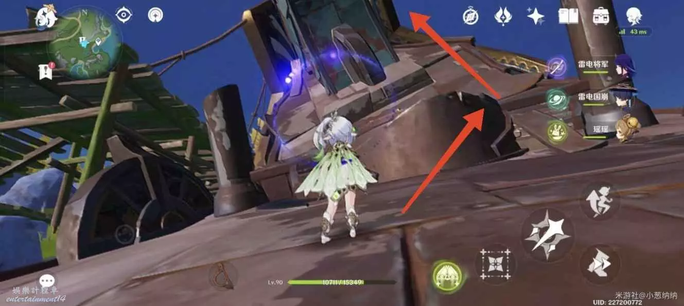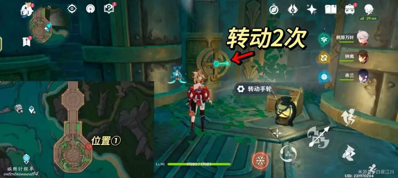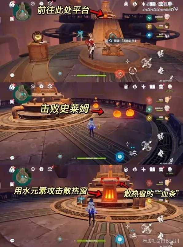 擊敗敵人後,與機關互動啟動電梯,乘坐中間的電梯到達上層。