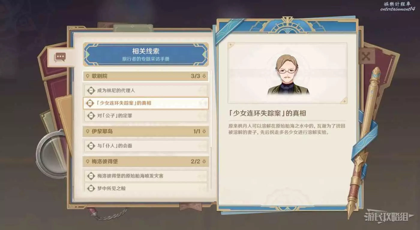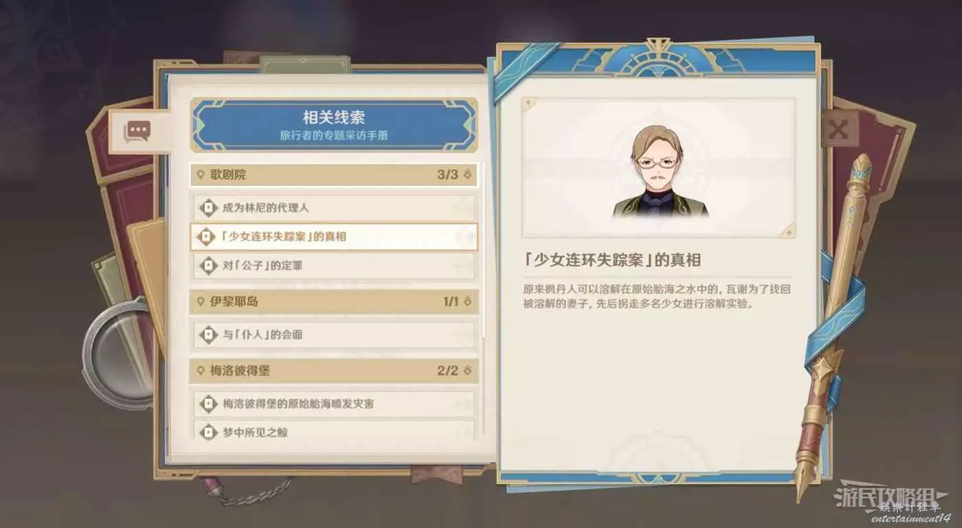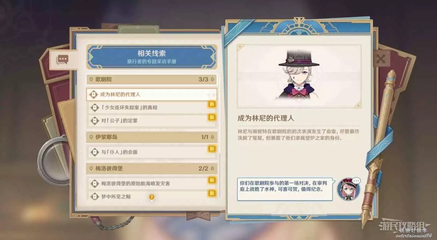 跟隨劇情通過夏洛蒂整理好的獨家專訪,獲得線索簿。