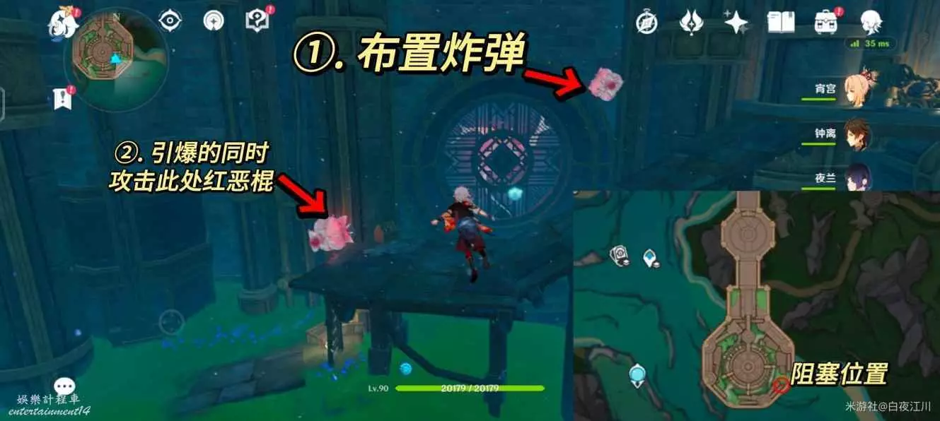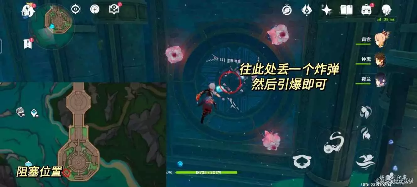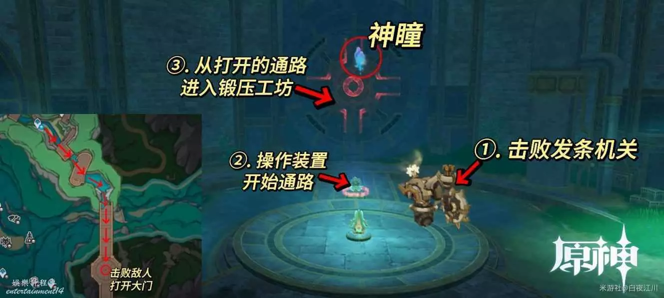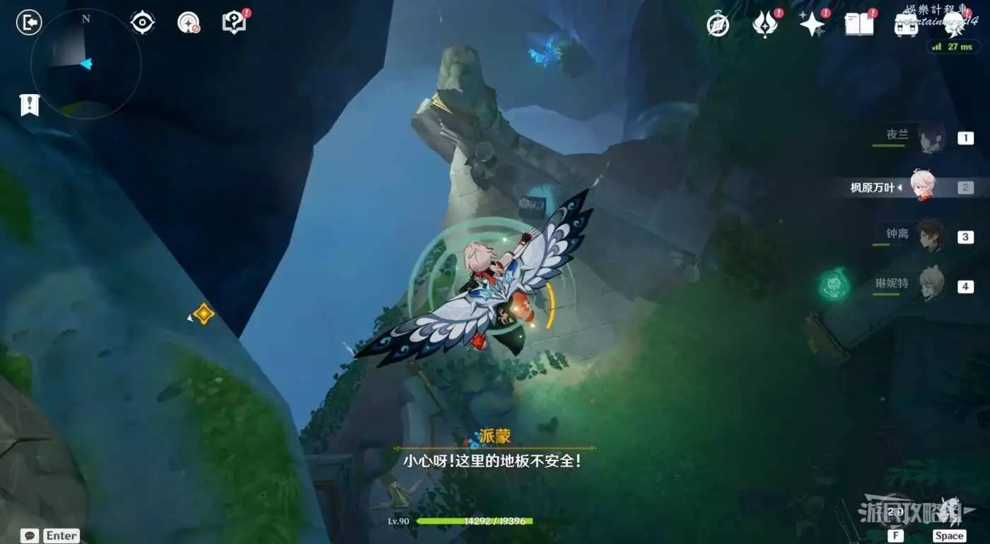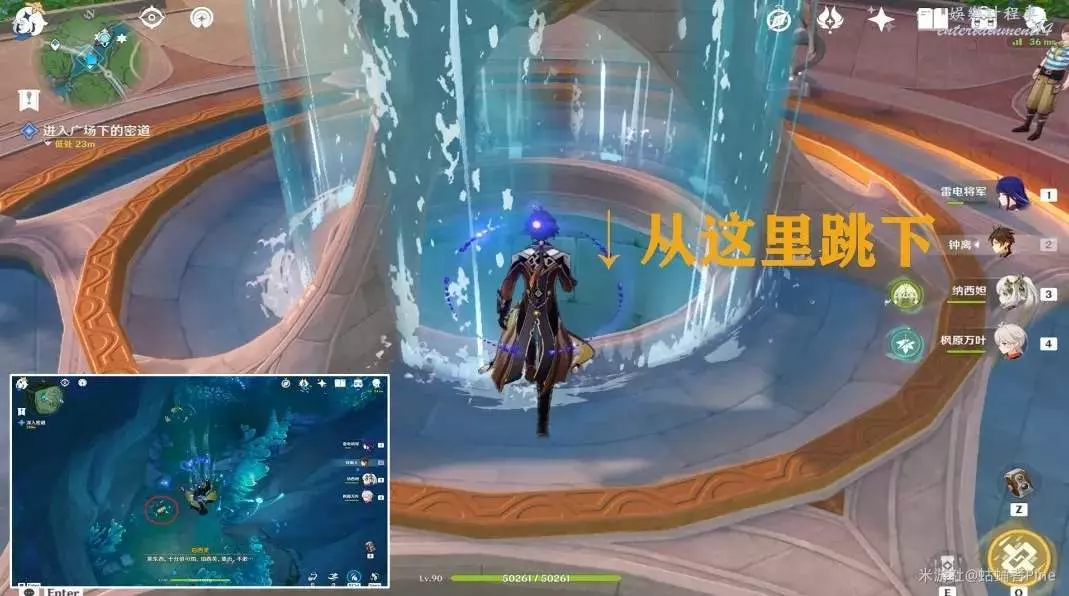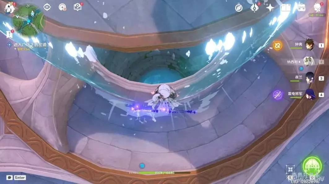 繼續前進,前方地板會塌陷,進入地板上的洞。注意此時一定要落在下層丘丘人所在的地板上,否則掉落到下層將無法爬回來。