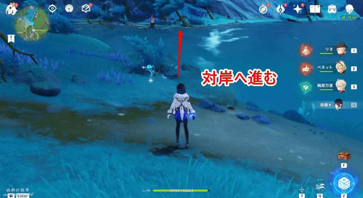 到達對岸後,繼續跟隨任務指引前進,觸發劇情。