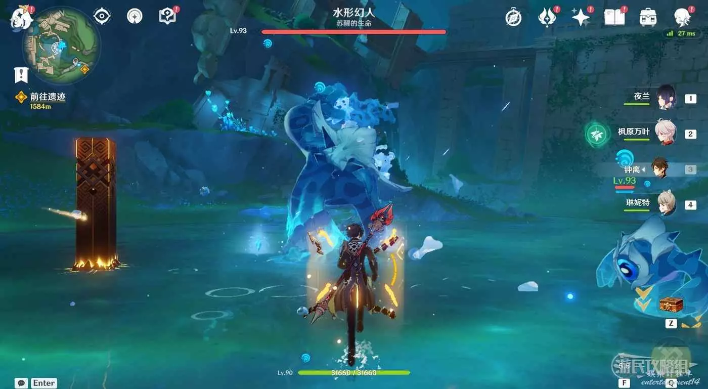 進入秘境後跟隨任務指引前進。擊敗敵人。