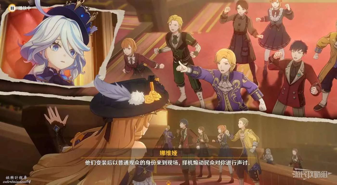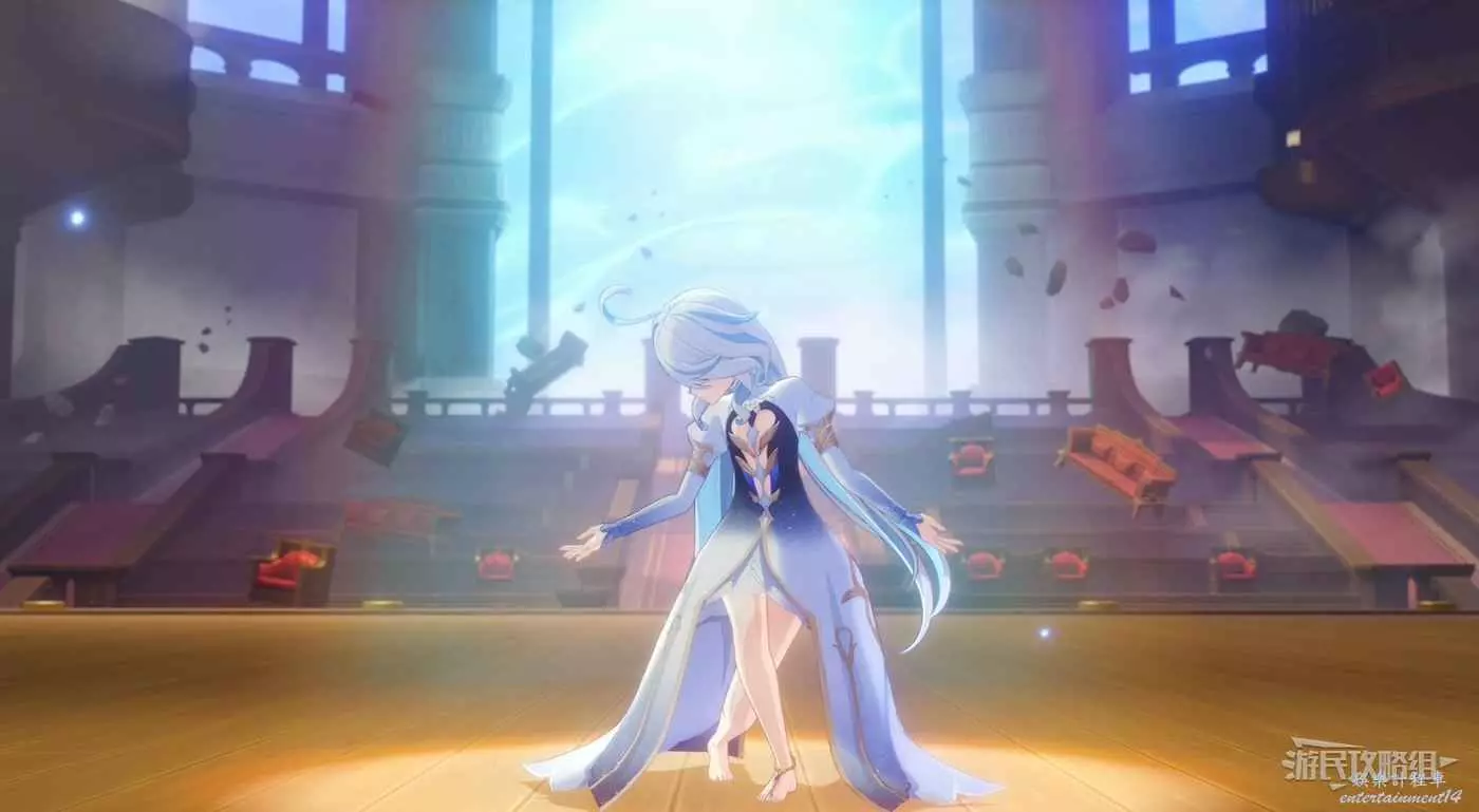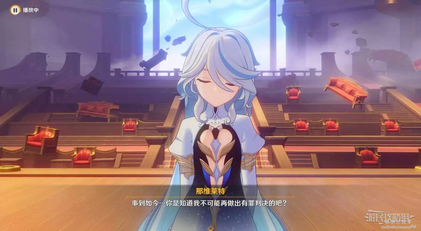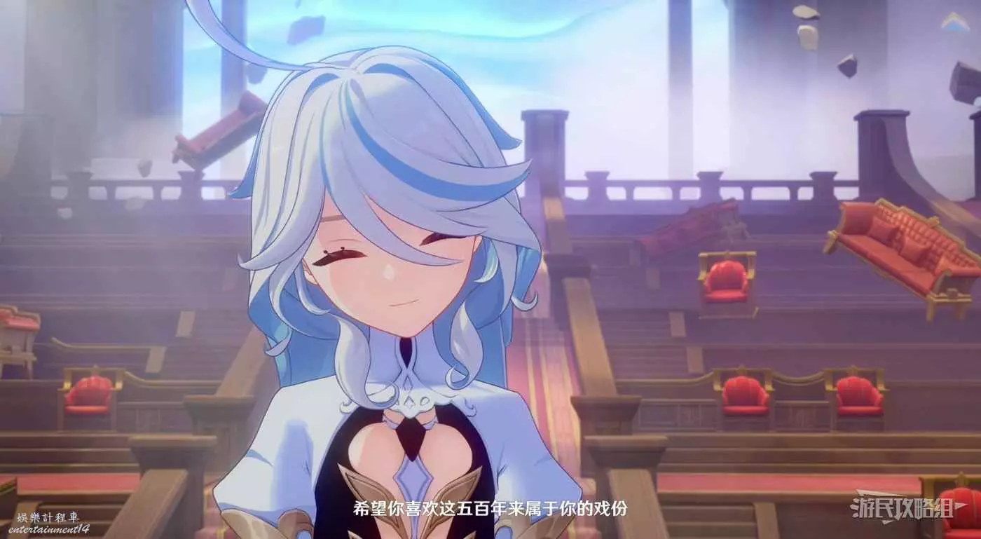 對話結束後,繼續扮演芙寧娜,走上座位。