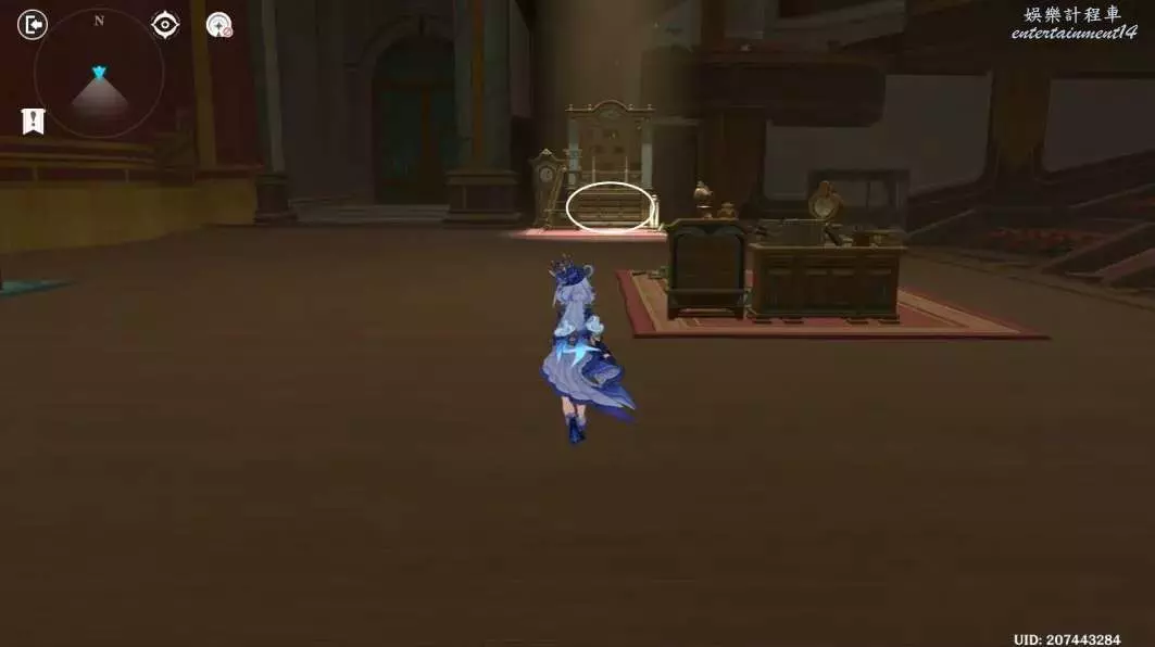 往地圖的北方向走,靠近圖中指引沙發,進入對話