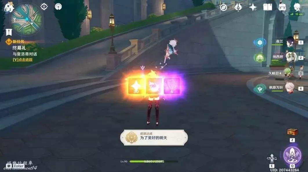與夏洛蒂對話結束,完成任務「黑潮與白露的歌劇」,獲得成就「為了美好的明天」