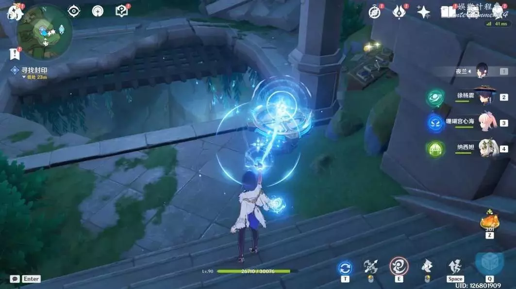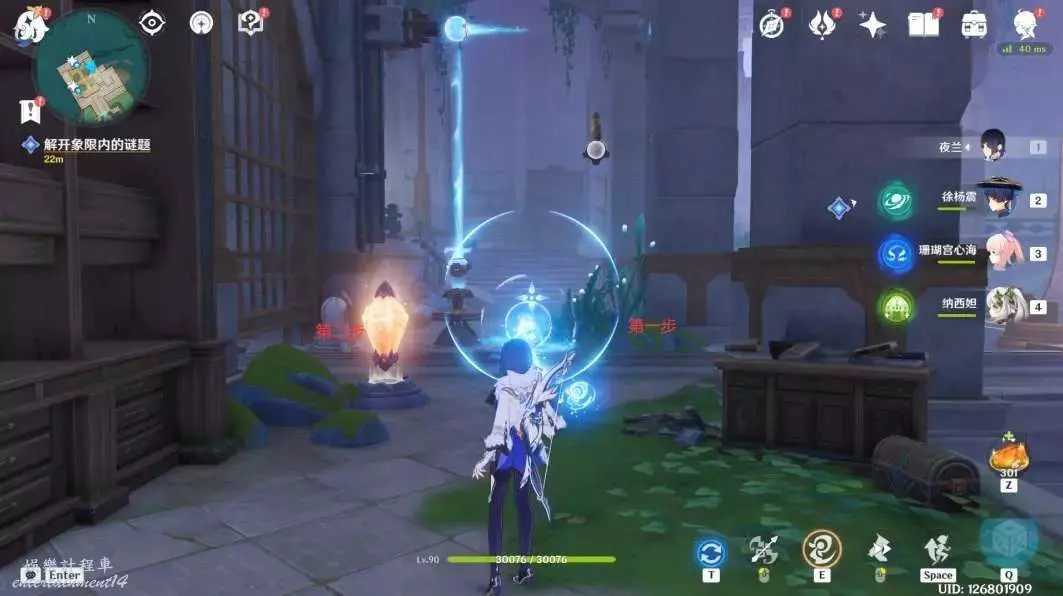 1,根據指引來到此處,拾取樓梯的光球能量後,對準機關長按技能,等鐵門開啟後快速跳下。
