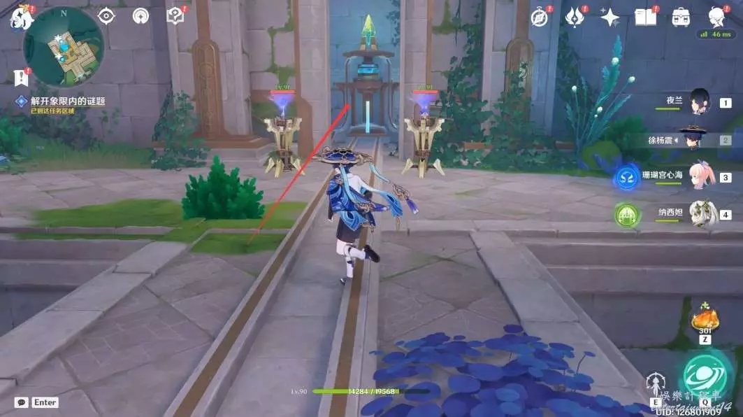 2,根據指引來到此處,點擊互動,前往箭頭指向的位置進行解密。