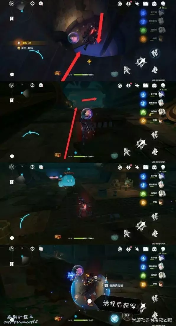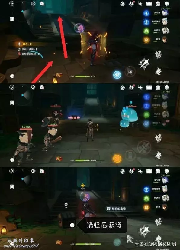 進入秘境,跟著箭頭走,清怪可獲得一個精緻寶箱