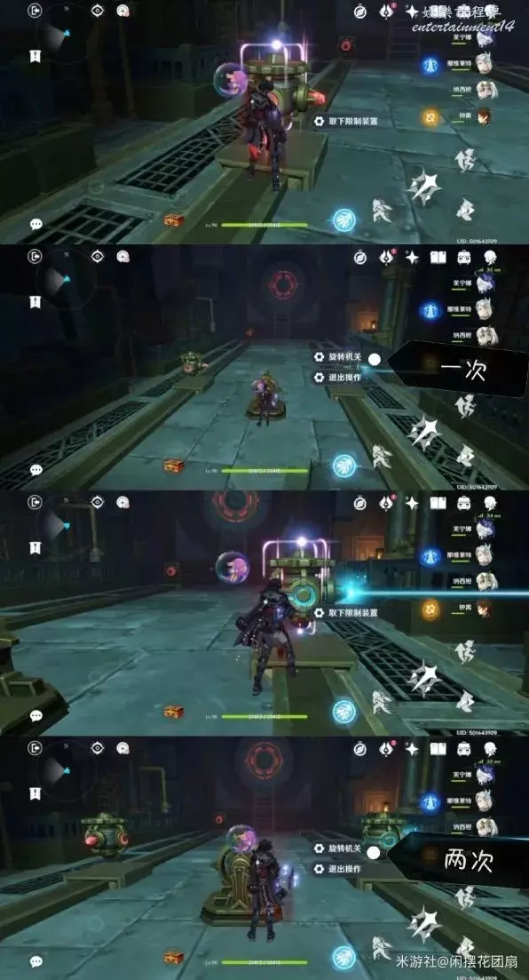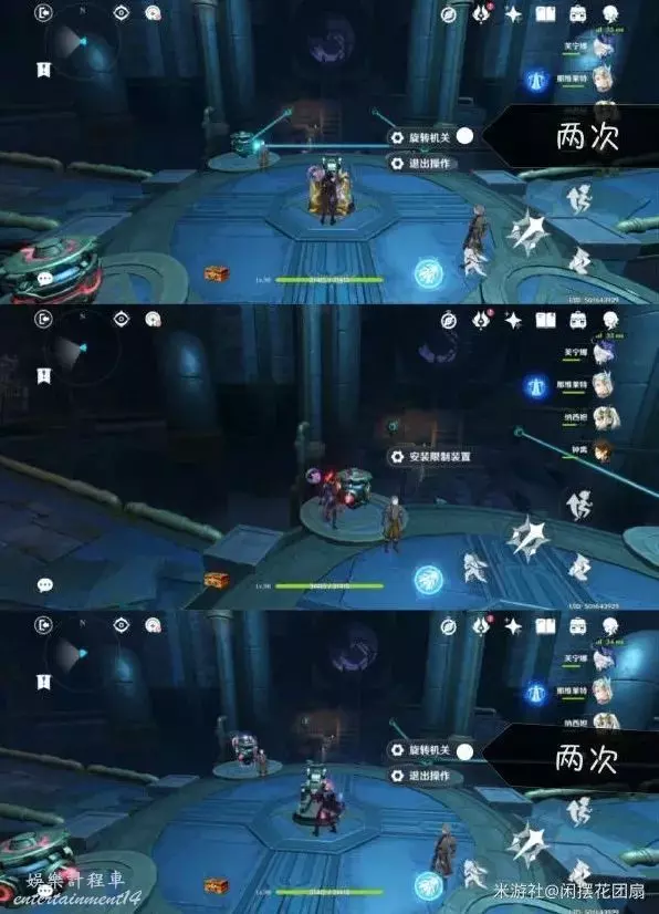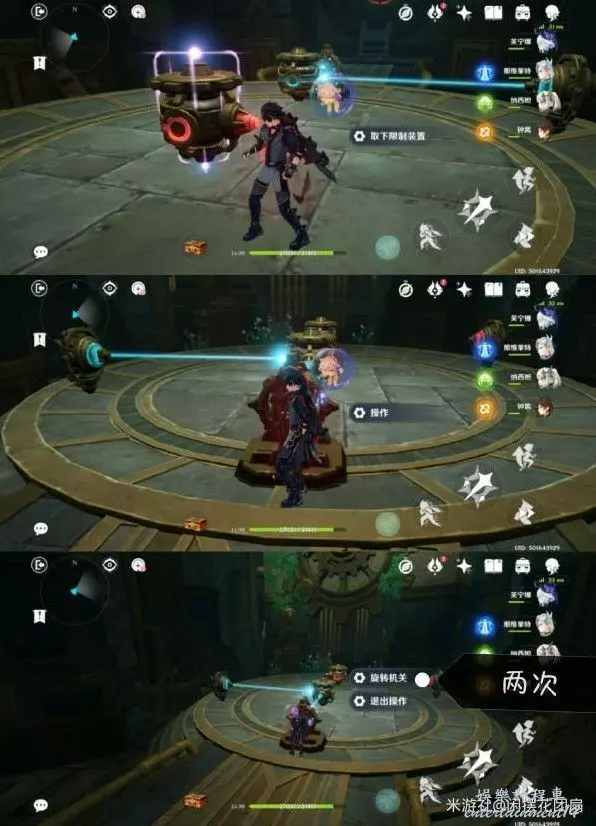 先給左邊的機關取下限制裝置,然後操作控制台旋轉機關一次,然後取下右邊機關的限制裝置旋轉機關兩次,即可解鎖大門