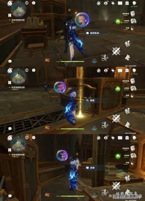 然後與萊歐斯利對話、調查發光束、與派蒙對話