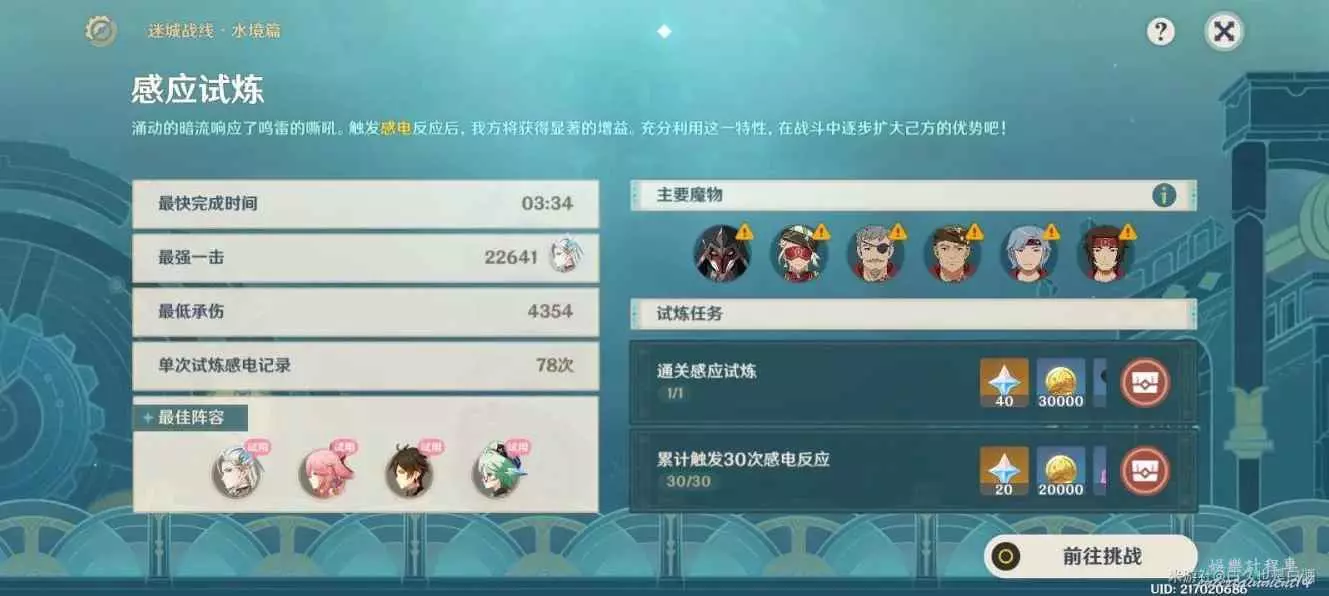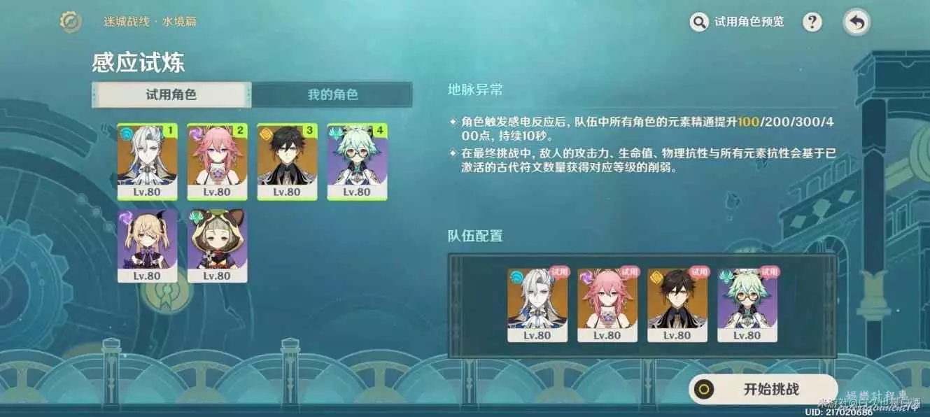 本關的地脈異常為感電後增加精通,所以打的時候可以八重神子先e後不斷進行掛雷,然後用那維萊特觸發感電