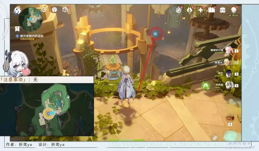 3,再來到南邊的升降柱,對準右邊的晶體發射光束,將它升到2格(出現較長的光線即可)