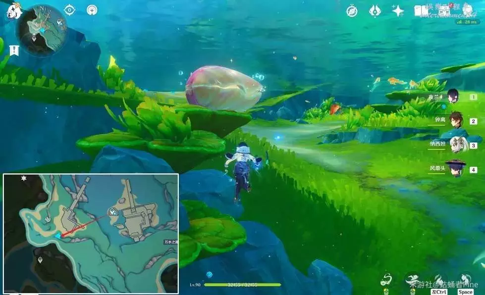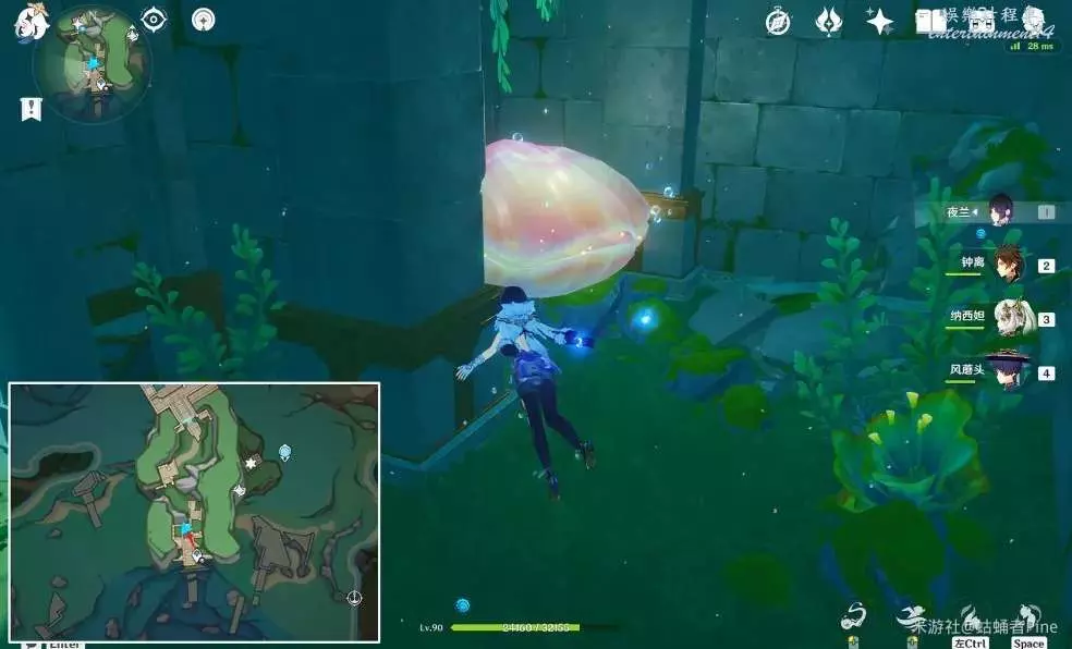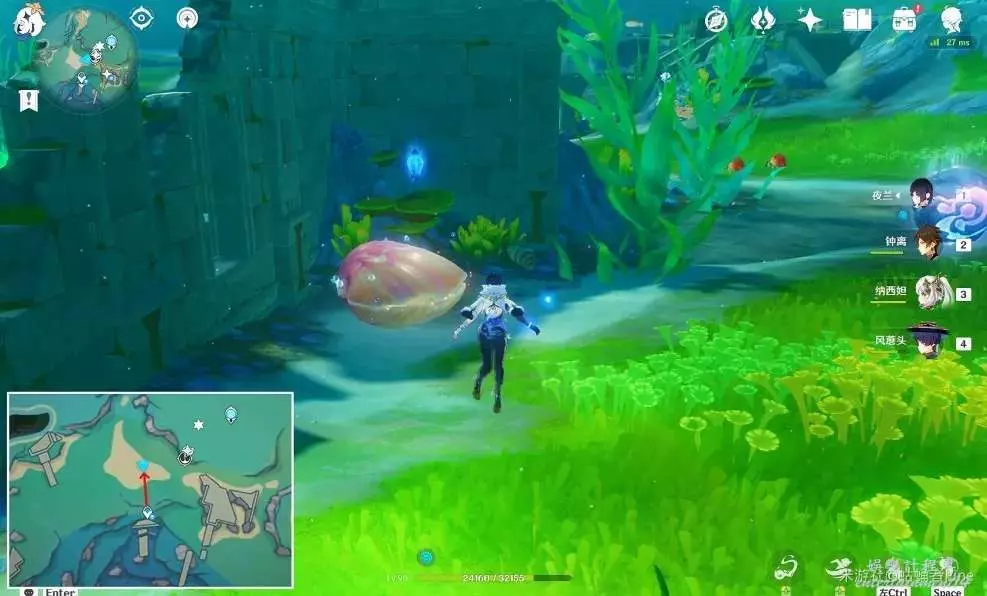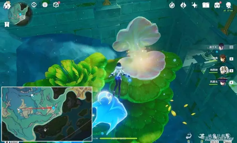 2,然後來到湖中垂柳東邊水池,吸收章魚力量,清除菌毯(先小後大),潛下去進入漩渦
