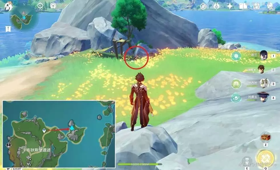 1,來到高塔東南部,藏寶圖在遺跡上面的貝殼裡