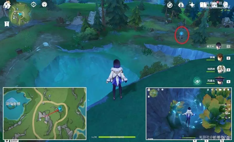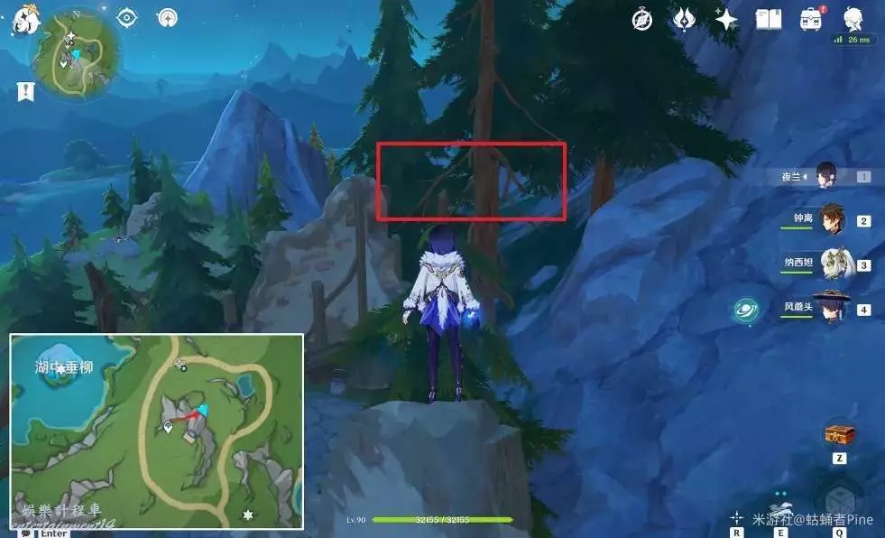2,之後來到湖中垂柳東部山腳,使用近戰角色普攻三下樹即可獲得寶箱