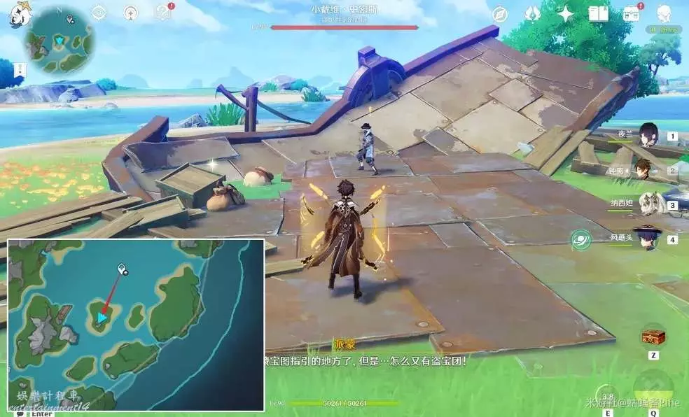 1,來到地圖東邊的海域,藏寶圖在沉船邊的貝殼裡