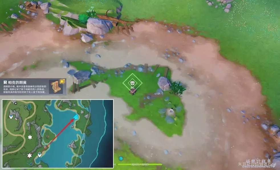 2,來到柔燈港北邊小島,挖掘即可獲得寶箱