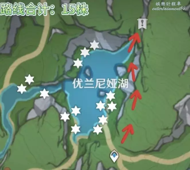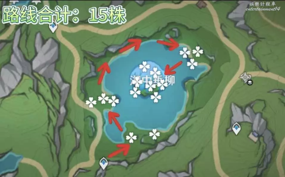 【點位路線(數量)】:完成世界任務後的湖中垂柳附近新增(15株)