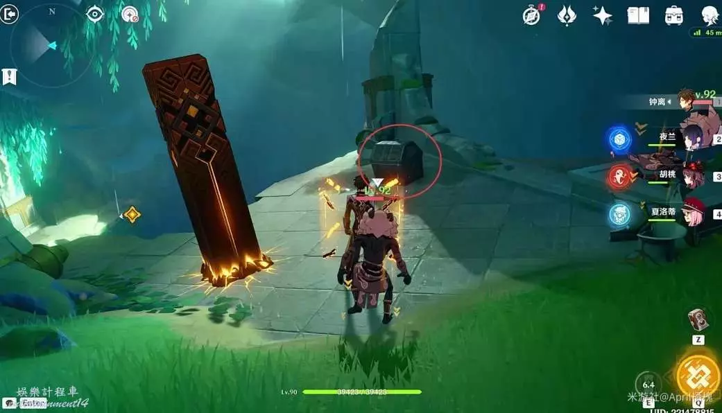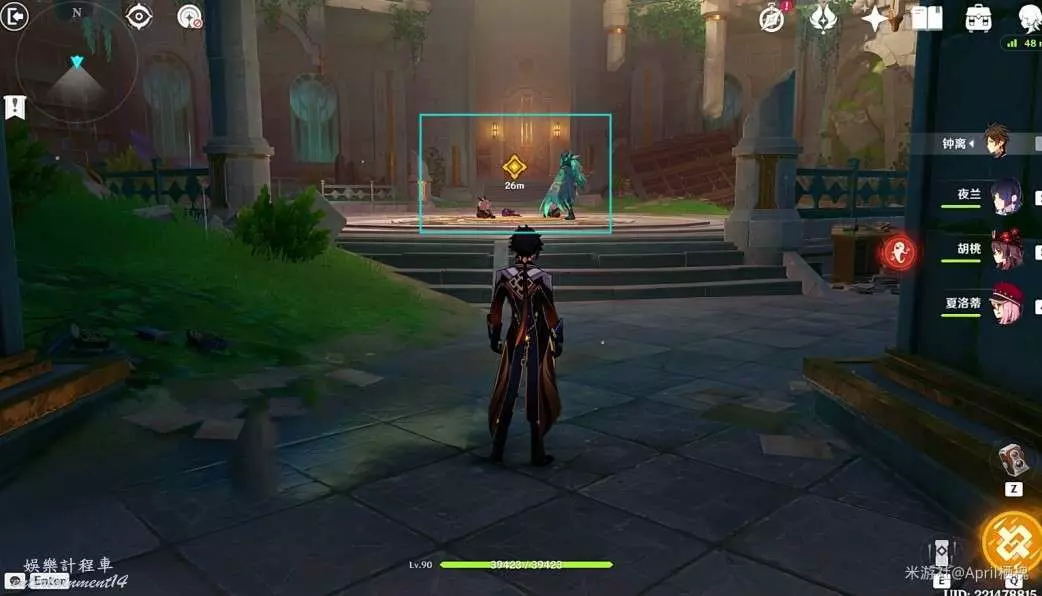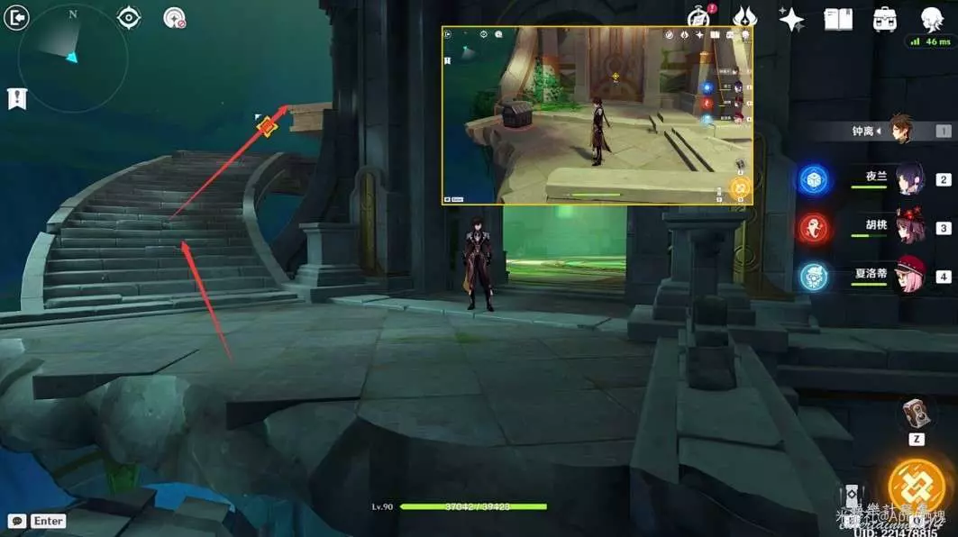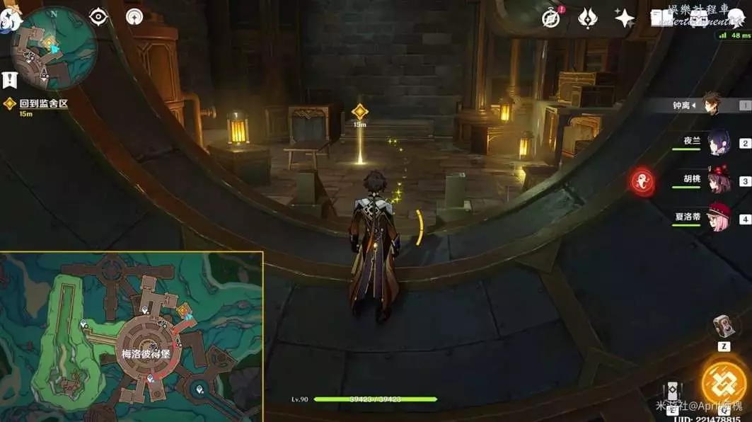 (2)丘丘人清理完後繼續跟著指引往小地圖南方向前進進入通道,通道盡頭站在碎地板上掉下來,有一個精緻寶箱;