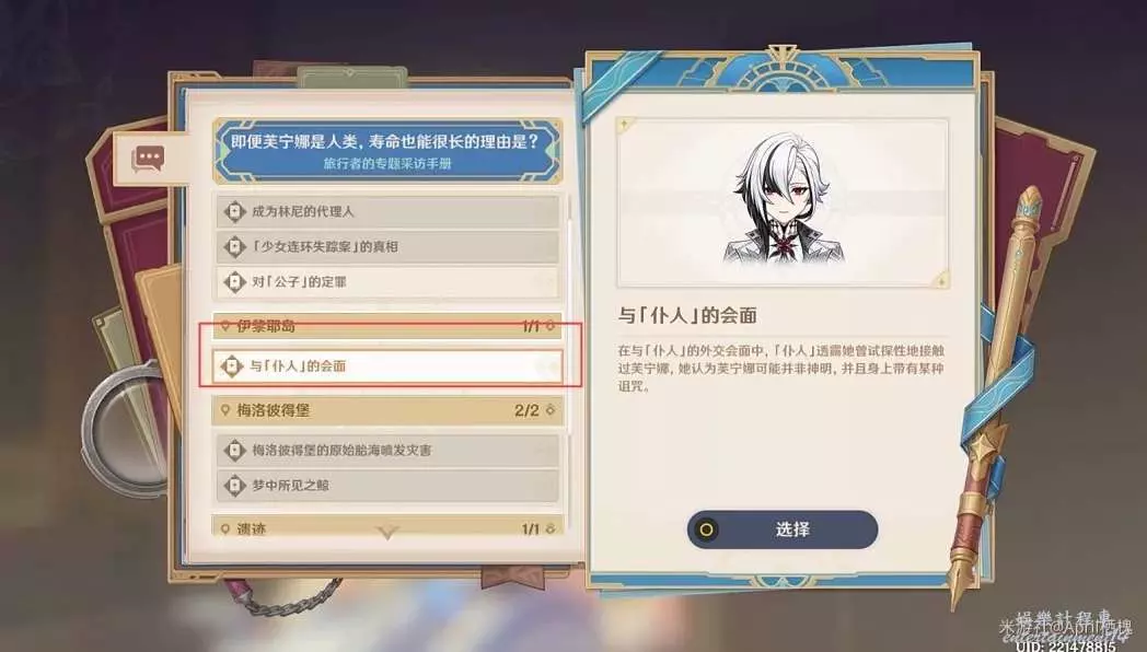 [即使芙寧娜是人類,壽命也很長的理由]:選擇“與「僕人」的會面”。