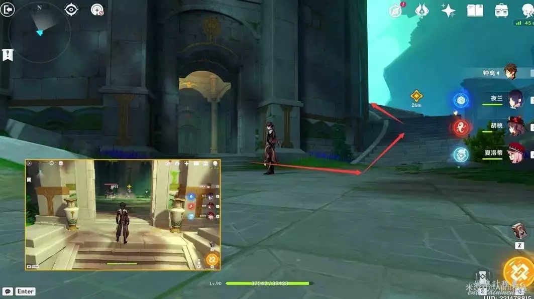 (1)進入遺跡後跟著指引往小地圖南方向前進,來到下圖位置清理丘丘人;