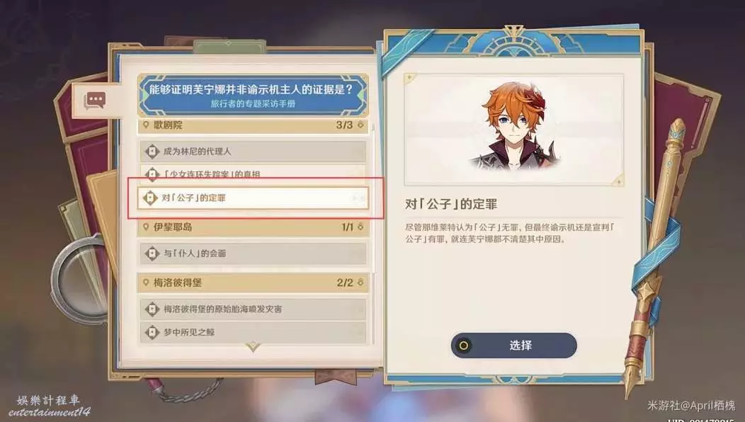 [芙寧娜不是諭示機主人的證據]:選擇“對「公子」的定罪”。