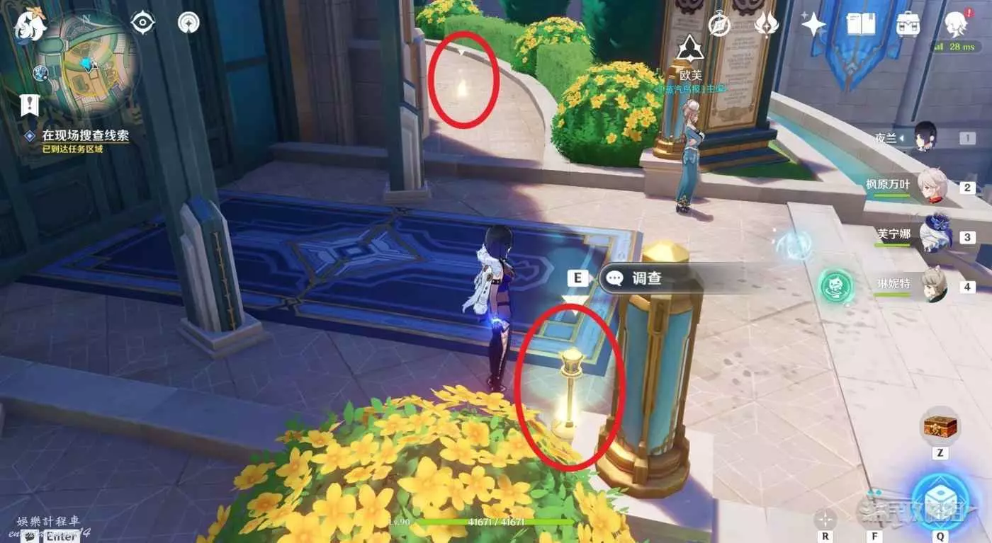 推理完畢後自動觸發對話。對話完畢後,傳送到歐庇克萊歌劇院東邊傳送錨點,前往目標位置,靠近後自動觸發對話。注意前方會自動觸發與盜寶團的戰鬥,記得提前調整好戰鬥陣容。