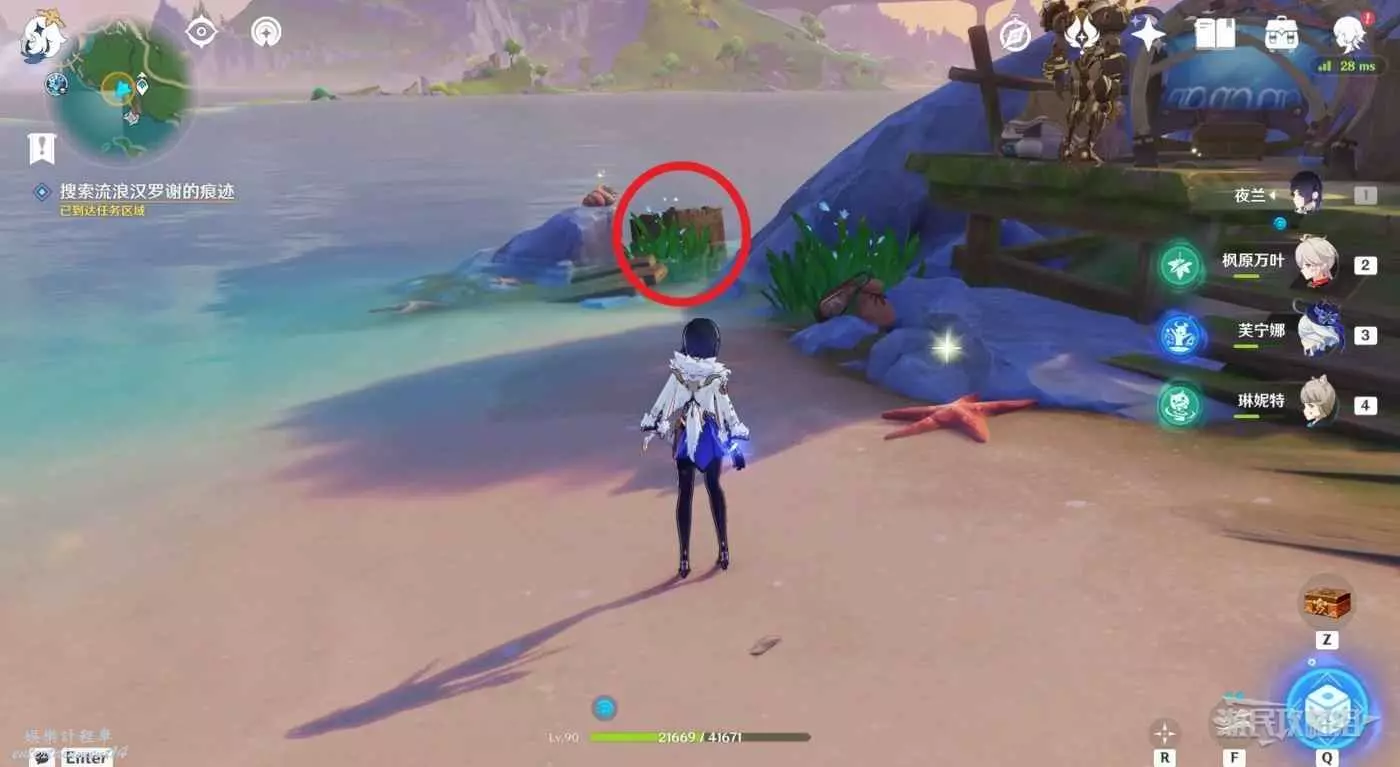擊敗盜寶團成員,自動觸發對話。對話結束後,打碎海邊的木箱,自動觸發對話。