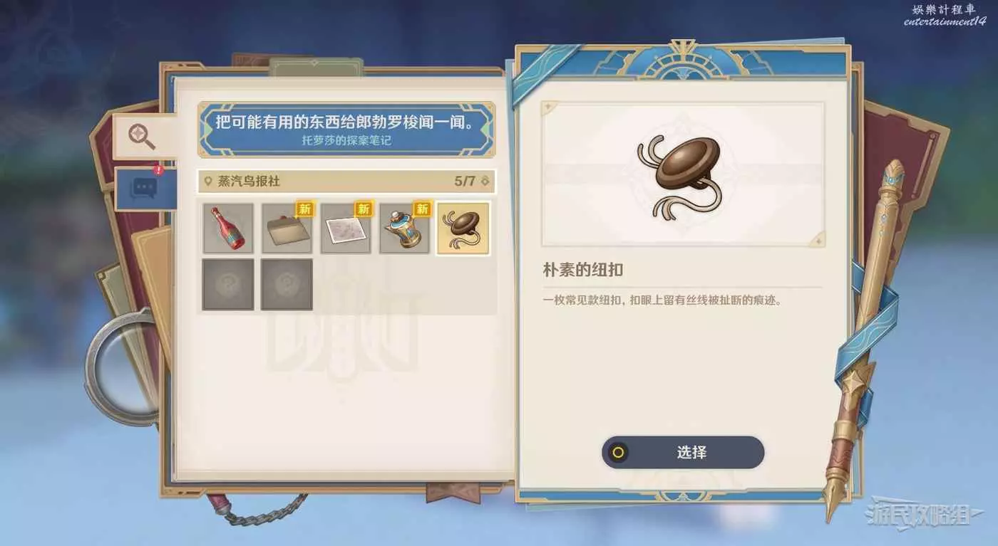 繼續跟小狗(朗勃羅梭)對話,選擇【樸素的紐扣】交給小狗。
