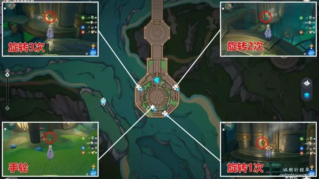 5,之後將漏氣的管道全部關閉,共三處,點位如圖(手輪在底層,裝在東南角的管道)