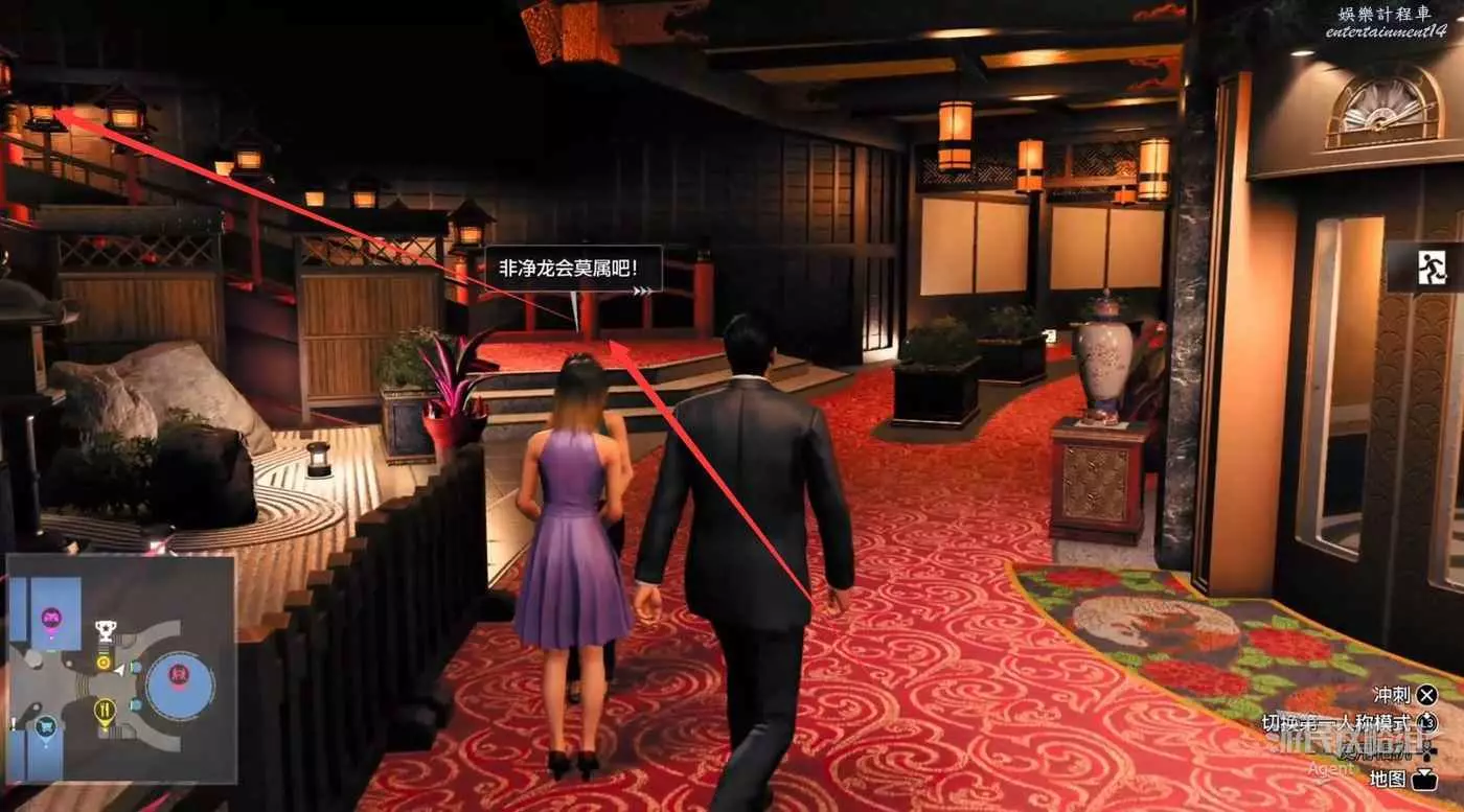 競技場戰鬥後,到直升機停機坪找赤目離開。別忘了去城堡的夜店逛逛。